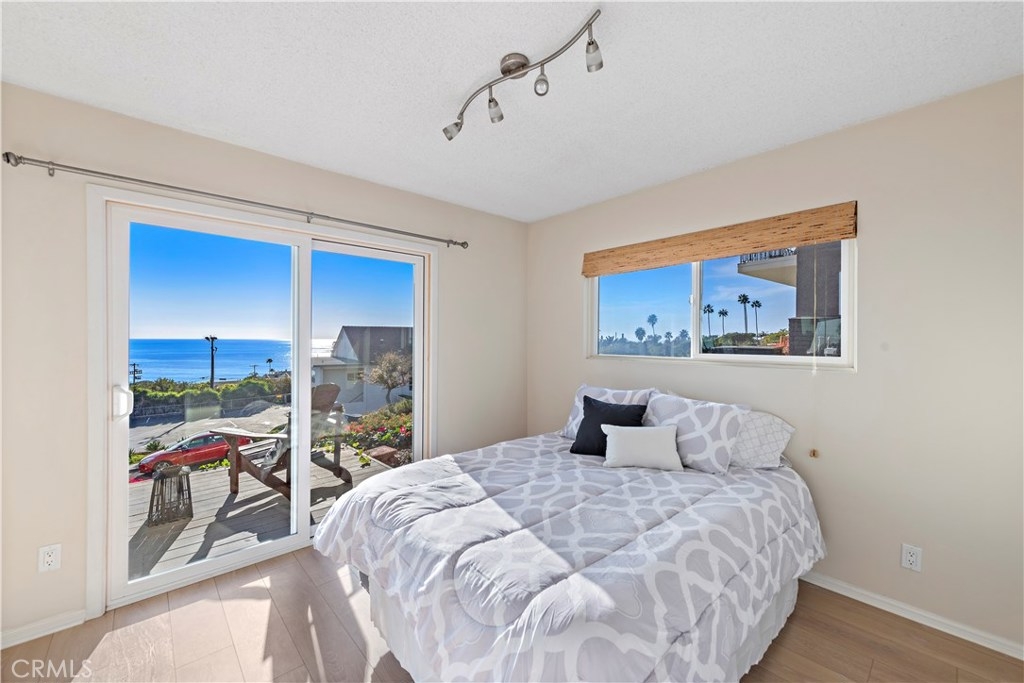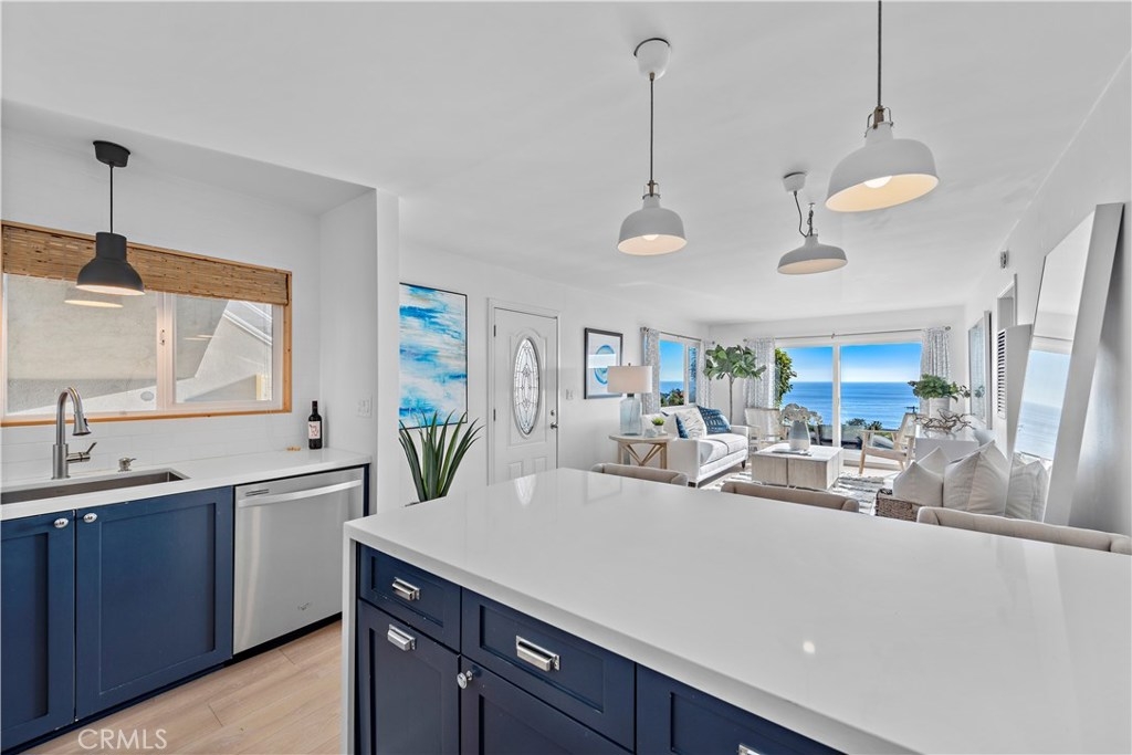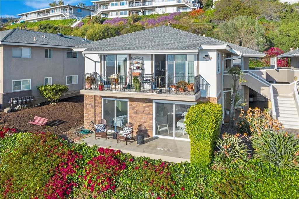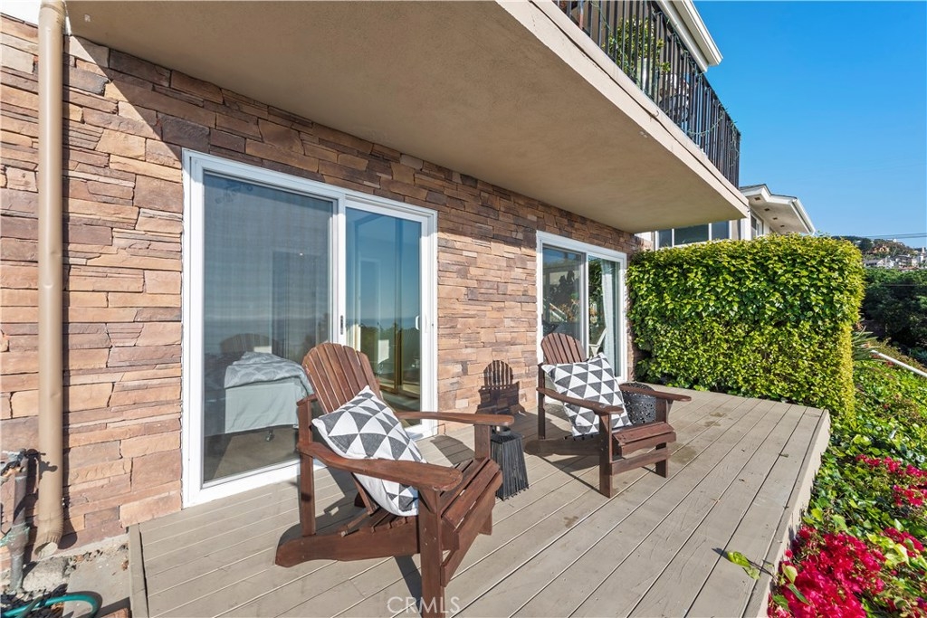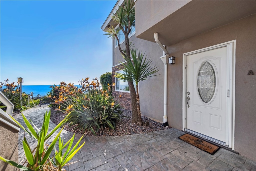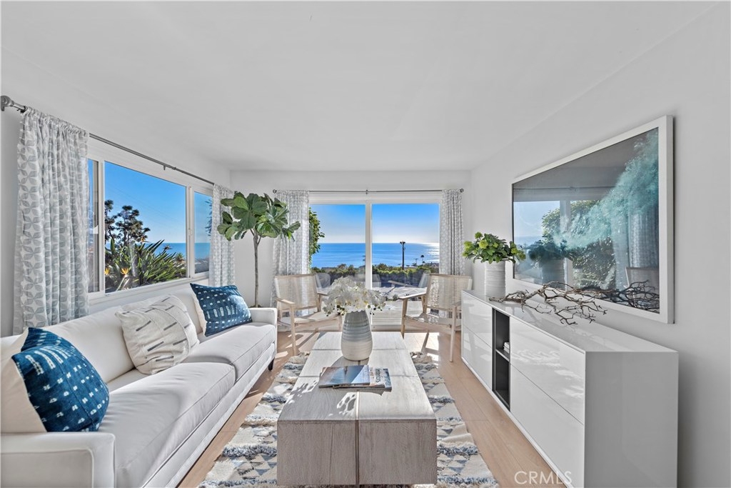 Location + Ocean View + Remodeled bring the trifecta of a wonderful opportunity to call home. A single level, end unit with no stairs from the rear driveway access. Beach close just blocks up from the Montage, Gelson's shopping, restaurants and The Ranch resort with 9 hole golf course. Enjoy blue water ocean views from the living, dining, kitchen and front bedroom. Decorative front door leads in to an open concept living space with engineered hardwood throughout. Opened kitchen with stone counter bar seating, stainless appliances and refrigerator. Vinyl dual paned upgraded windows and sliders, lead to your own sizeable ocean view deck. Two bedrooms with sliding closet storage share an updated bathroom with stone counter and flooring. Renovated building with stone facade and updated landscaping. One car carport space with storage is conveniently close by. The ocean view complex pool rivals any resort, with unobstructed ocean and canyon views plus clubhouse area. Just a block from Lang Park with tennis, pickle ball, basketball court, community rec center, tot lots, and large grassy field. Nearby trolley stop for downtown access or just stay local with a variety of shops & amenities!