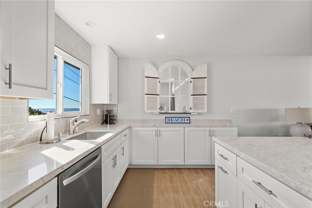 Look for Unit D - because this property is Dazzling! Welcome home to this beautifully remodeled ocean-view condo—a true #HiddenGem nestled just above the world-class Montage Hotel. This isn't just a home; it's a vibe. Wake up to tranquil #Bluewater ocean views from your primary suite or kitchen, with epic Catalina and sunset views from the living room or charming patio. It's the ultimate #CoastalRetreat. Live here for your next staycation inspiration! You're only a 5-minute walk/ride to the pristine Aliso Beach or Treasure Islands Beaches, known for their crystal-clear waters and ideal conditions for swimming, paddleboarding, and surfing. It's a total #LifeHack for beach lovers. Beyond the sand, you're steps from scenic hiking trails and the exclusive Ranch golf course at the base of the hill. Evenings here are pure magic with jaw-dropping Catalina sunsets and famous rooftop dining spots. Beaches, world-class dining, museums, galleries, nightlife, and shopping—this location delivers the full #LagunaBeachLifestyle. Boaters, the 10-minute drive to Dana Harbor means even more opportunities to fall in love with #CoastalOrangeCounty.