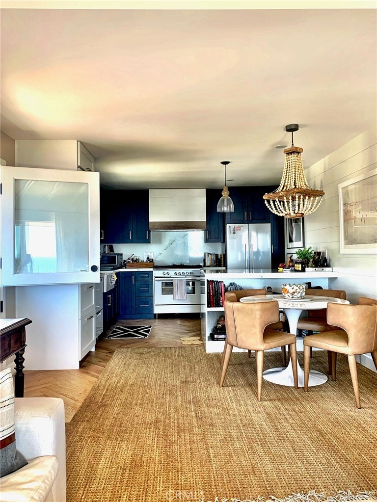Kick back in this calm, stylish space with a full ocean view on a quiet cul-de-sac street. Walking distance to the Montage beach, this luxurious condo has been fully updated by a published LA interior designer. New Sub Zero wine column, new Fisher Paykel appliances includes a gas range and 2 dishwasher drawers. Luxury Thermador microwave drawer. Quartz kitchen countertops, herringbone wood floor, and a completely updated bath with designer tile. Beautiful lighting fixtures put the finishing touches on this property. Tons of built-in closet space in the primary bedroom and three reach in closets in the hallway. This is an end unit with no neighbors on the south side. Do not miss this move-in ready condo.