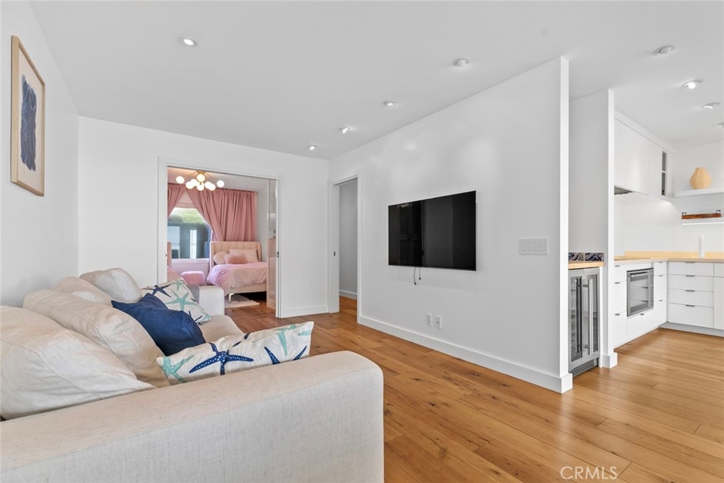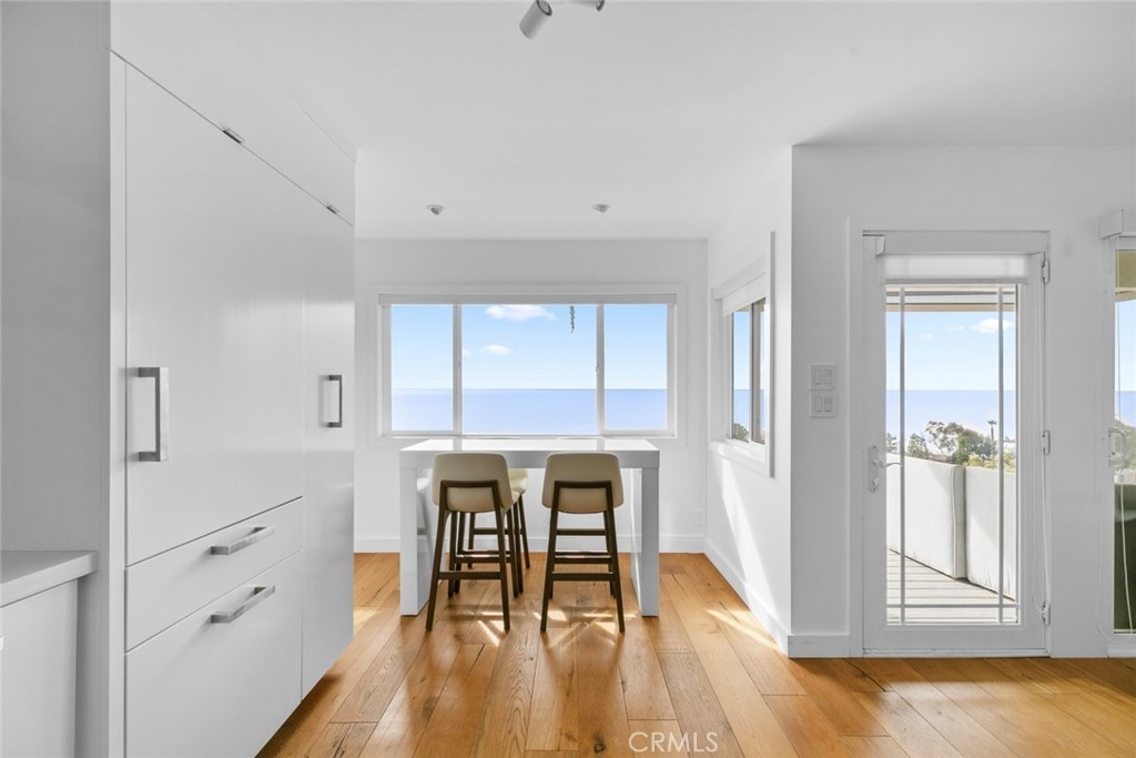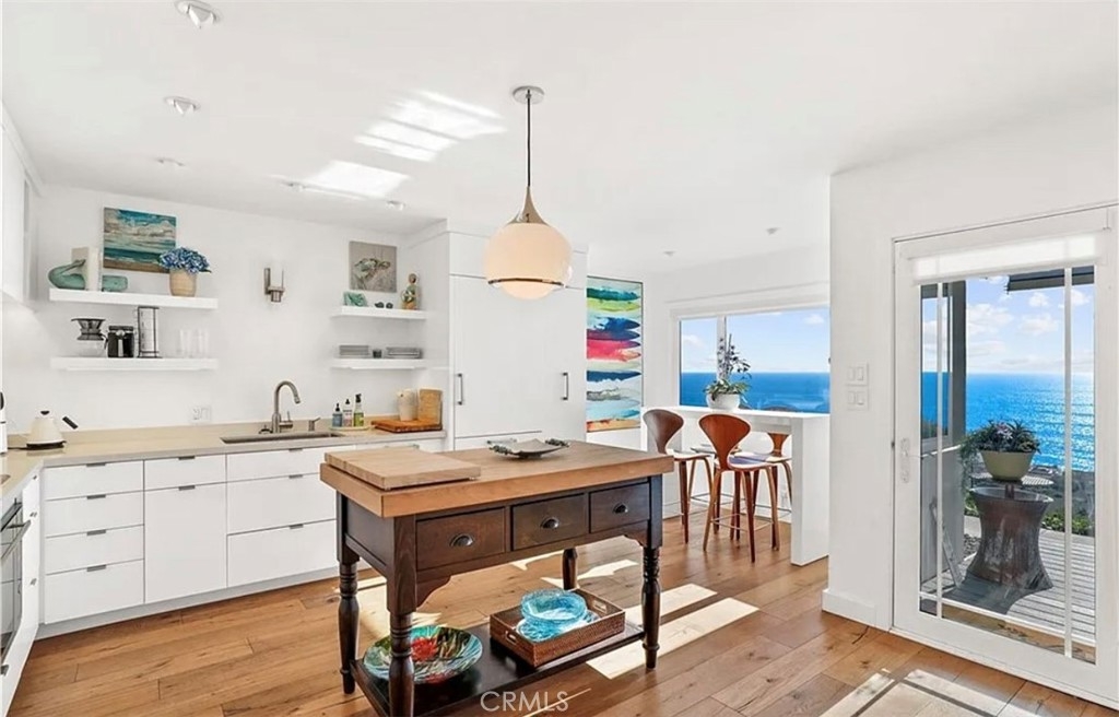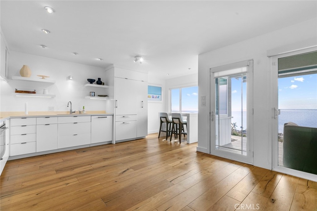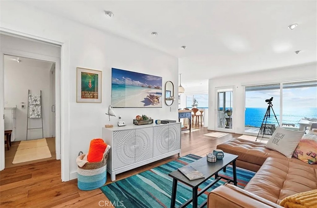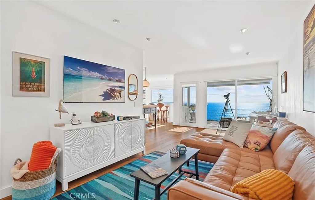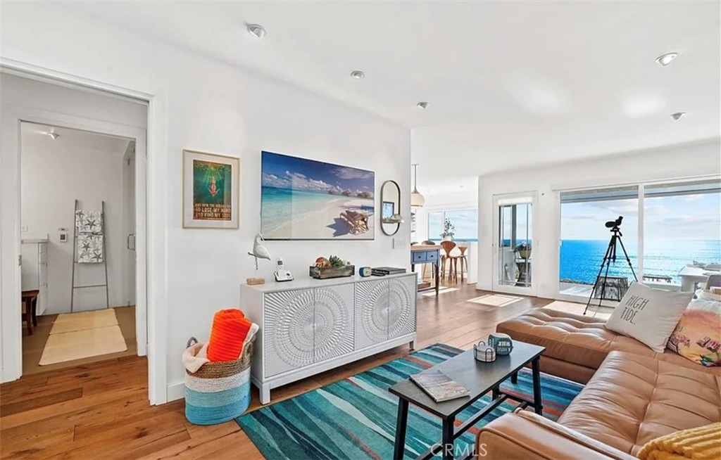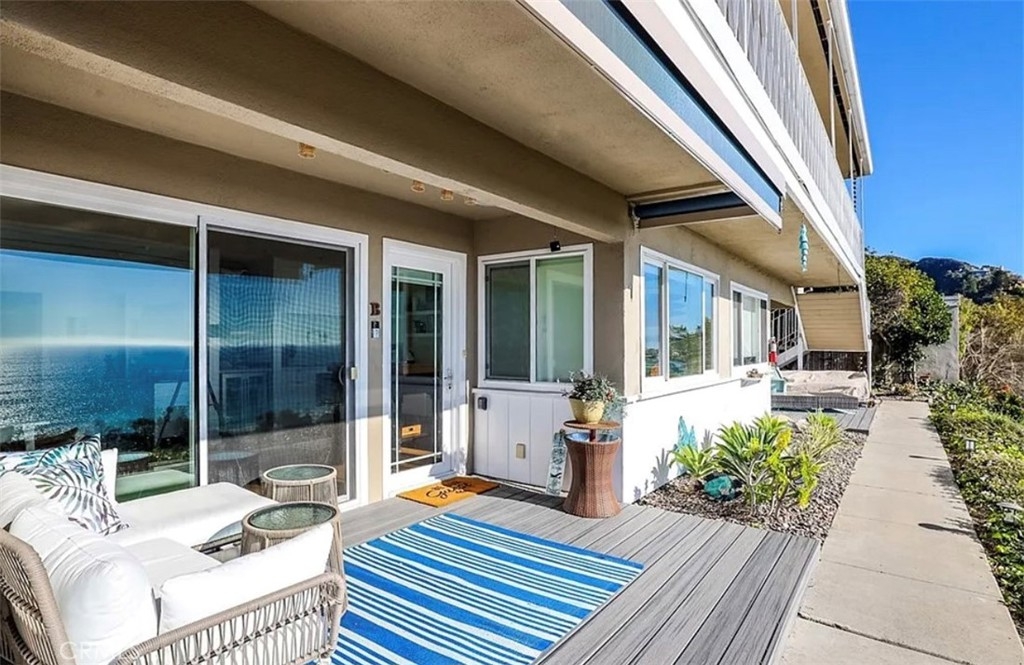 Nestled across from the Montage Resort, this serene home is perched on the hillside above some of Laguna Beach's most stunning shorelines. This immaculate fully furnished 2-bedroom, 1-bath with breathtaking, unobstructed ocean views was completely remodeled and upgraded featuring modern design with warm, wide-plank solid oak floors. The kitchen boasts white Caesarstone countertops, premium appliances, a Thermador cooktop, Kuppersbusch oven and dishwasher, Hansgrohe fixtures, and a GE Monogram refrigerator. The spa-like bathroom is a standout, a powerful steam unit, a Jason Hydrotherapy tub, heated porcelain limestone floors, and floor-to-ceiling porcelain tiles. Features include dual-pane windows and doors with custom translucent coverings, a spacious master closet with built-in cabinetry, and a private rear patio off the master bedroom. Enjoy beautiful sunsets from the front patio, community pool, or walk to the beach for a relaxing day by the ocean. With easy access to premier restaurants, downtown beaches, shopping, and the trolley, this home offers the best of Laguna living. Complete with a single-car garage, outdoor privacy screens.This peaceful retreat invites you to experience the ultimate coastal lifestyle.
