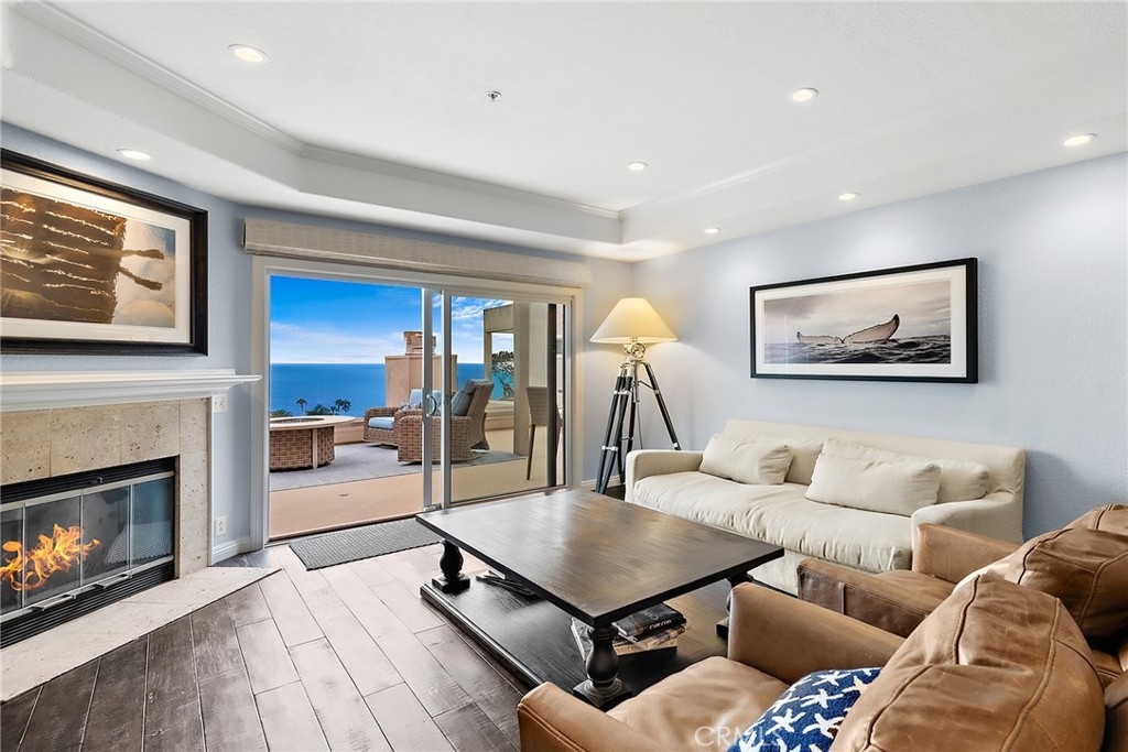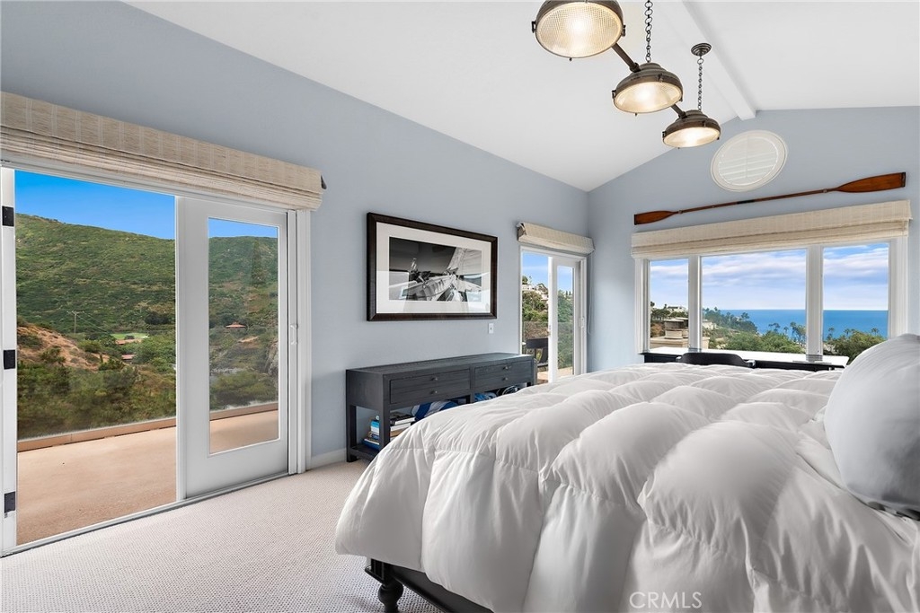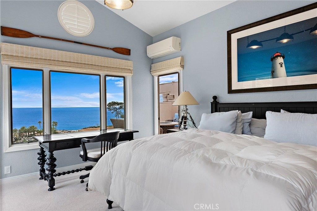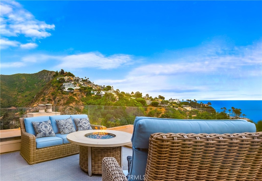 Panoramic views overlooking the ocean, the mountains, and the beach! Breathtaking sunsets! The sound of the waves! Easy 3-minute walk via a private path gets you to Aliso Beach, the Montage and the Ranch at Laguna Beach - you are that close! This is a rarely available PRIVATE corner unit with no one living above, no neighbor intrusion, and no rooftops in your ocean views from every room, including the kitchen. This is an oasis that feels like living a dream vacation every day. The main deck overlooking the ocean is absolutely huge, has two fire pits, and is great for entertaining. The master suite has its own extra large private balcony facing the mountains and the ocean. This location in the 11-unit community feels nicely tucked away - just you and the surrounding natural landscape. Head inside and gaze at the ocean from the rain shower built for two in the master bathroom. The entire unit has been updated with tasteful attention to detail, including authentic hardwood floors, Pella double-pane windows and sliders, new carpet in the bedrooms, Kohler fixtures, a chef's kitchen with a large island, Bosch refrigerator and a deluxe wine fridge. The bathrooms have been entirely redone. The layout feels spacious and breathable, with high ceilings in the master bedroom, huge showers, plenty of closet space, and in-unit laundry with washer & dryer ready to go. The large 2nd bedroom feels like another master. Don't worry about the lack of central A/C - there is a super high-end Mini Split A/C unit installed that will easily cool the entire unit on days when the air is still instead of the usual cool saltwater breezes that wonderfully pass through. There is secure gated garage parking with two side-by-side spaces and extra storage. The furniture and artwork are the owner's, not staged, and these can be included with the purchase if so desired, for a truly turnkey "vacation home" experience - just move in and enjoy! And for fun, the home has a "coffee table" arcade machine loaded with hundreds of classic games, a brand new Sony 4K TV and 4K Ultra player. This is the most private unit with the best views in the community in an incredible location in Laguna Beach. It's a home that has it all ready to go, making this a special and exciting opportunity. Enjoy a lifestyle of paradise and live the adventure!