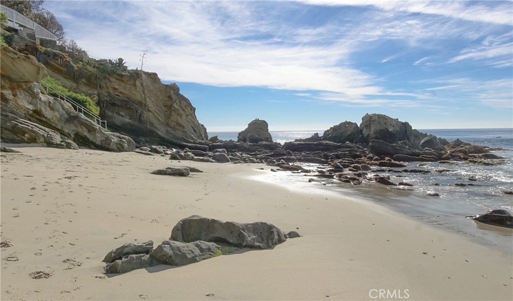 Amazing Fully Furnished Ocean View Condo Just Steps from Sand, Tide Pools & Semi Private Beach in Quiet Cul-de-sac ~ INVESTOR’S DREAM: Previously used as Luxury Fully-Furnished Rental, Renting at $2,850 p/m, Annual. Short-term Summer-rate was $4,500 p/m (June, July & Aug) & Off-Season Rate was $3,150 p/m ~ Open Office Area w/ Partial Ocean Views; Work From Home ~ Code Entry to Inviting Courtyard ~ Lavish Grounds w/ Community BBQ, Eating Area, Relaxation Chairs, Clubhouse, Laundry Room & Outside Shower ~ Astonishing Kitchen w/ Impeccable Custom Cabinetry, Flawless Granite Counters w/ Dazzling Dekor 36" Island Mounted Stainless & Glass Range Hood, Striking High-Raised 6" Talissa Decor Faux Tin Backsplash, Appliances Include Refrigerator, Dishwasher, Range, Oven, Microwave & Built-in Wine Refrigerator ~ Elegant Crown Molding Throughout ~ Chef's Kitchen & Family Room w/ Stunning Hardwood Floors ~ Bathrooms w/ Gorgeous Travertine Floors ~ Powder Room w/ Beautiful Pedestal Sink & Kohler Fixtures ~ Luxurious Master Bath w/ Ocean View, Granite Counters, Copper Illusion Vessel Sink, Spectacular Full Travertine Shower w/ Alluring Wall, Ceiling Showerheads & 1/2" Tempered Glass Shower Door ~ Covered & Gated Carport ~ Low HOA, $325 ~ Low Tax-Rate, 1.130% ~ Excellent School District w/ Top Ratings ~ Laguna Beach is Home of South OC's Top Hotspots Known for Art Galleries, Fine Dining, Coves, Beaches, Surfing, Coastal Canyons & Laguna Coast Wilderness Park w/ Walking Distance to Everything.
