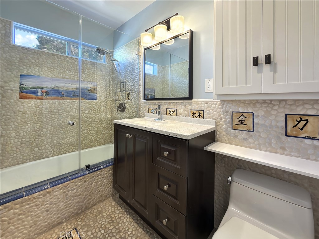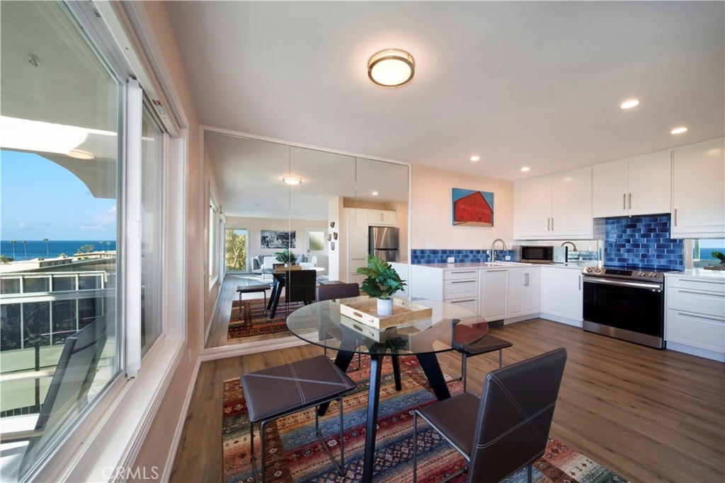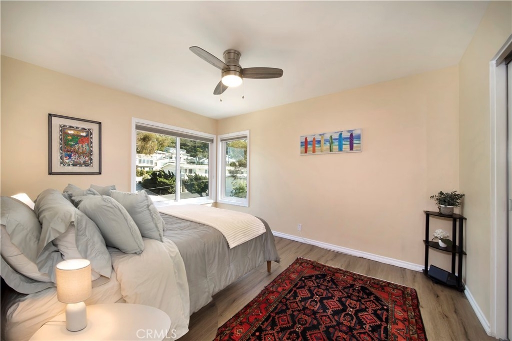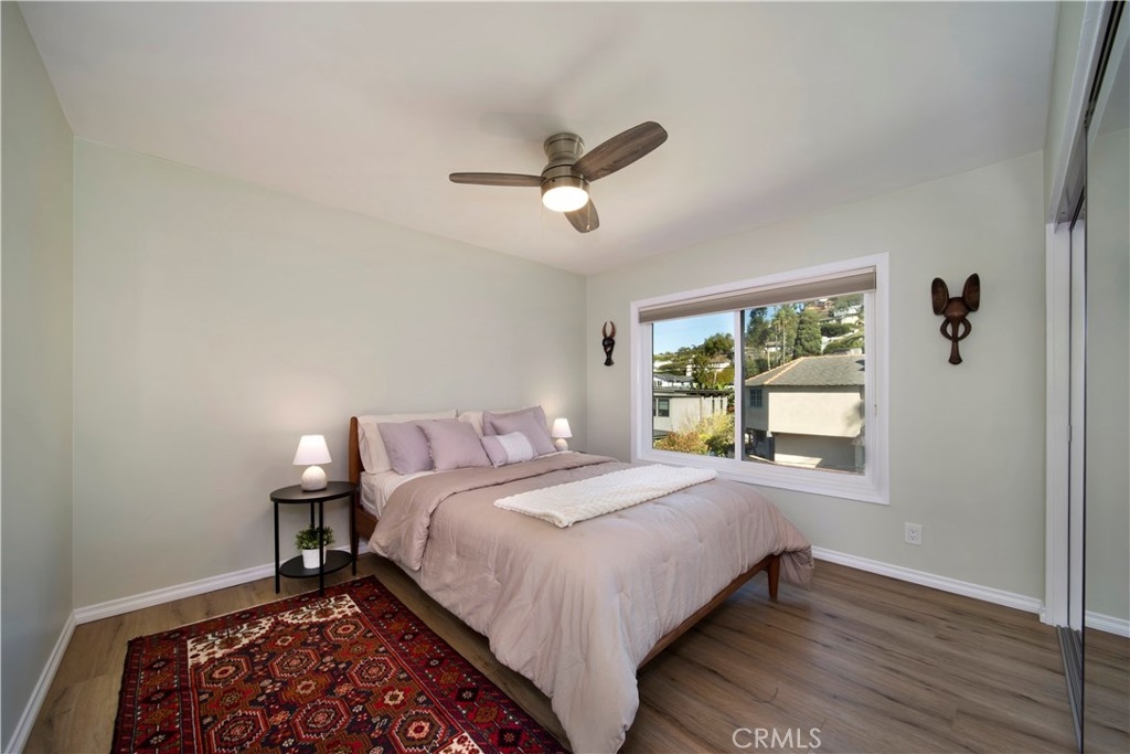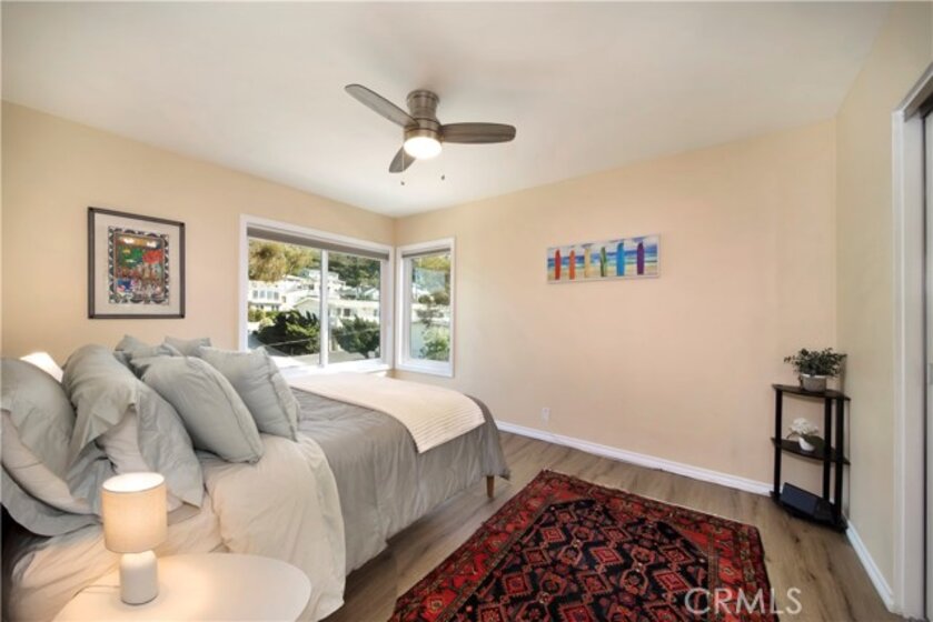 SPECTACULAR and STUNNING OCEAN VIEWS greet you as you enter this top-floor "Penthouse" condominium situated in prime ocean-close Woods Cove area of Laguna Beach. This superb COASTAL RETREAT has been recently remodeled and renovated with high quality wood-look composite flooring, Milgard windows and slider (earthquake proof and lifetime warranty), top quality Hunter Douglas blinds with light-blocking in bedrooms and light filtering in living/dining areas, large wall mirror in dining area, all-new kitchen by IKEA including cabinets, counter tops, dishwasher, stove and vent plus refrigerator and beautiful designer Blue Japanese fired Raku backsplash. Rounding out the full kitchen remodel, the kitchen plumbing has been replaced and a new garbage disposal. The electrical has been upgraded throughout the unit and a new hot water heater installed. There are new ceiling fans and doors to each bedroom plus custom built-in closets and mirror fronts and new ceiling lights have been installed throughout. The bathroom includes a designer-look complete with new faucet and new shower attachment, vanity and toilet. The ceilings have been refinished and the interior features new highest quality LVOC paint. The expansive deck highlights top-quality privacy glass in balcony seating area and new marine paint on deck floor and railings. A Ring Camera doorbell has been installed and a keypad door lock with key option. The covered carport, nearby and below, includes a storage cabinet. The spacious living room and dining area is filled with natural light and opens to the deck for seamless indoor/outdoor living providing the perfect vantage point to capture the breathtaking ocean and Catalina Island sunset views. This property spotlights the rare combination of harmonious designer spaces, thoughtful interior design, amazing ocean views, and near beach location. Enjoy the luxurious and relaxed beach lifestyle living in Laguna Beach...catch the nearby Trolley to the Art Festivals. The sandy beaches, Art Galleries, restaurants and shops are just minutes away.