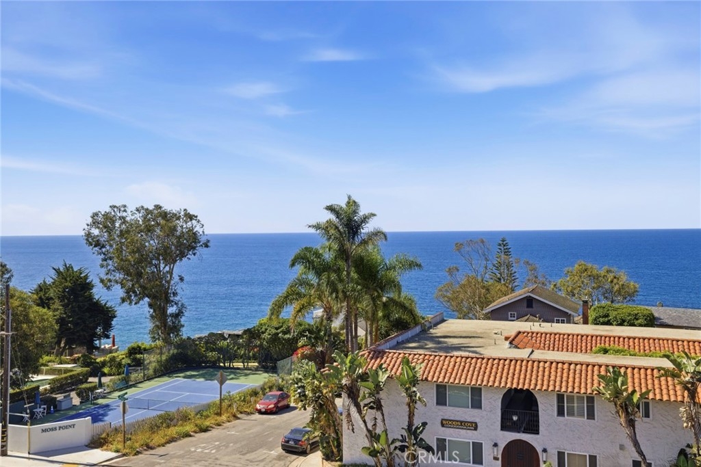 If you’re looking for views, this is it!! Ocean views from every room! From the covered front balcony, you get sweeping views of the Pacific, white water coastline, Catalina Island, PCH, city lights, and the surrounding hills, all coming together with incredible daily sunsets. Top-floor, center unit in the front building, closer to the ocean. This single-level 2-bedroom, 2-bath condo features an open floorplan and a spacious covered balcony that expands the flow. The primary bedroom includes a slider to the balcony, two closets, and an attached ensuite bathroom. Dutch front door. New carpet in the bedrooms, tile flooring throughout the main areas, plus a newer dishwasher, garbage disposal, and water heater. Assigned carport with storage and ceiling radiant heat. Just across PCH from Moss Cove, one of Laguna Beach’s most scenic coves. Prime Laguna Beach location close to downtown, art galleries, restaurants, shops, and world-class beaches. Moments from the Sawdust Art Festival and summer art shows, with easy access to the free Laguna Beach trolley, making it easy to enjoy everything Laguna Beach has to offer.