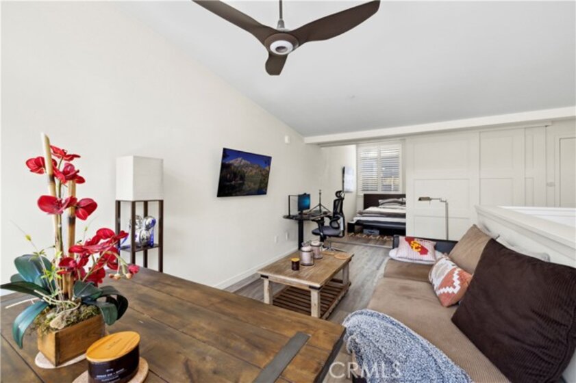 Exceptionally rare, undeniably luxurious, and one of the only newer-construction residences of its kind in Laguna Beach, this modern, open and light-filled condo offers a versatile live/work design at The Sheds in the heart of Laguna Canyon. Artists, including fashion, graphic and web designers, urban planners, architects and more, will find the space to be an ideal environment for creativity. The talents of Laguna Beach-based Horst Architects, Inc. are on display throughout the three-level loft-style floorplan, which includes two covered parking spaces on the first floor, main living areas on the second, and an office with sunny balcony on the third. Enjoy two ensuite bedrooms with walk-in closets, two baths, and a spacious living room with private deck. Opening directly to the family room, the high-end kitchen features a large dual-waterfall island with bar seating, quartz countertops, white Shaker cabinetry, a farmhouse sink and top-tier stainless steel appliances. Floating staircases, vaulted ceilings, hardwood flooring, large windows and glass doors, and high-end finishes and fixtures place this live/work condo and its three neighbors at The Sheds in a league of their own. Views of Laguna Canyon’s natural beauty are enjoyed from every floor, and its location places residents within minutes of the Laguna College of Art and Design, Laguna’s postcard-perfect beaches, hiking and biking trails, and village galleries, cafés, restaurants, clubs and shops.
