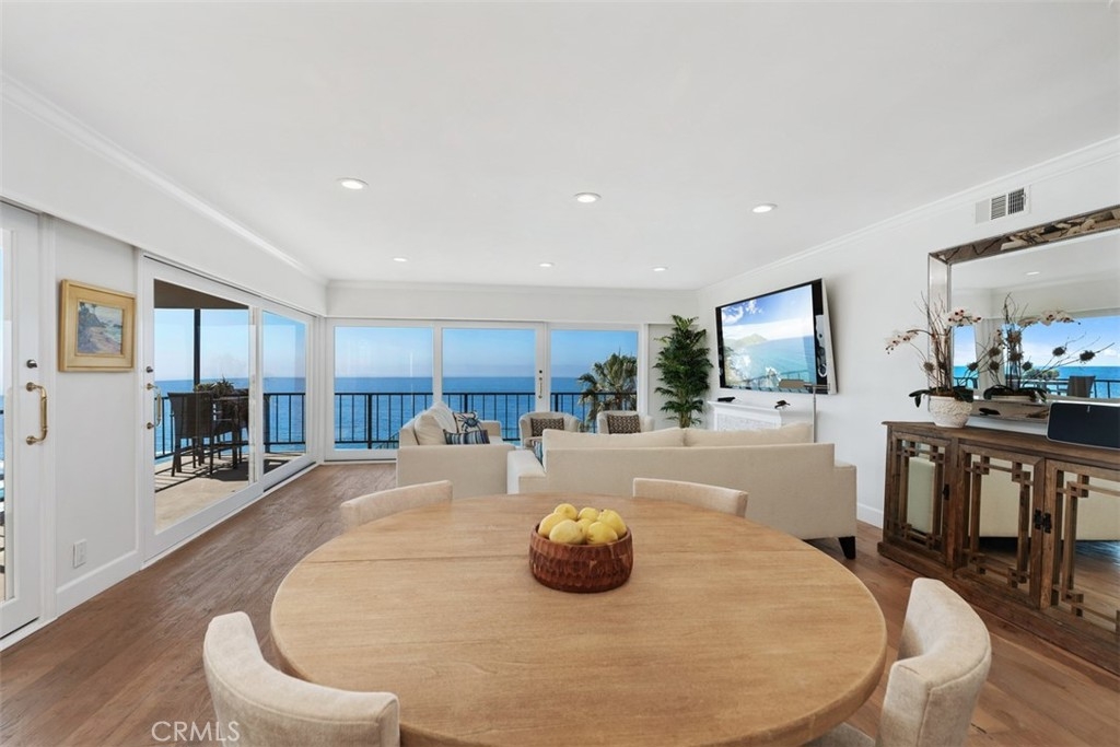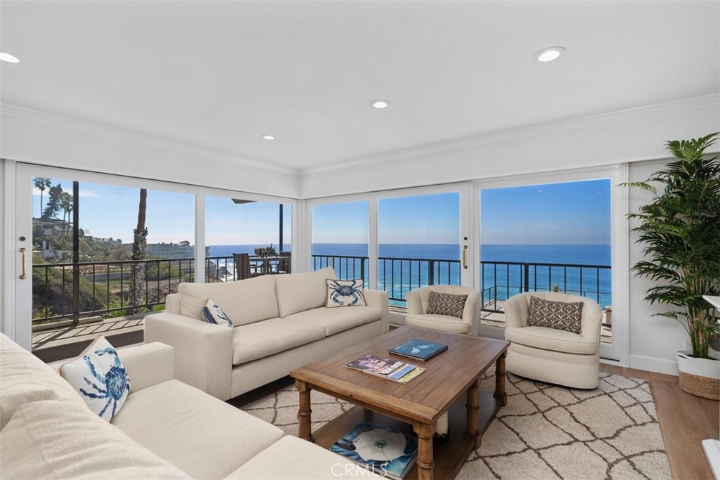 RARELY AVAILABLE 3-BEDROOM CORNER UNIT WITH DRAMATIC VIEWS! Step into luxury with this stunning 3-bedroom, 2-bathroom oceanfront condo in the highly coveted Laguna Royale. A double-door entry welcomes you into a spacious living and dining area, seamlessly extending to wrap-around terraces with breathtaking, views of the beach, ocean, Catalina Island, and year-round sunsets. Wake up to the soothing sound of waves from the master suite, which opens to the terrace. The remodeled master closet features mirrored walls, a custom vanity, and a spa-like en-suite bathroom with top-tier finishes. Guests will enjoy two additional bedrooms, including one with 2 built-in bunk beds. The unit also features a dedicated laundry closet for convenience. Laguna Royale offers the ultimate in opulent oceanfront living, with 24/7 security, concierge-style service, secure parking, and an on-site manager. Enjoy resort-style amenities, including elevator access to a year-round heated pool & spa, gym, and direct beach access. Unit #59 includes two parking spaces on the same level as the condo—no stairs, just effortless single-level oceanfront living. Additional features include Control4 smart home automation, electric indoor/outdoor shades, and soon to be installed glass railings (fully paid for by the seller). Stroll to the Montage Resort or whale-watch from your own living room. A rare opportunity to own a slice of paradise in Laguna Beach—bring your best offer!