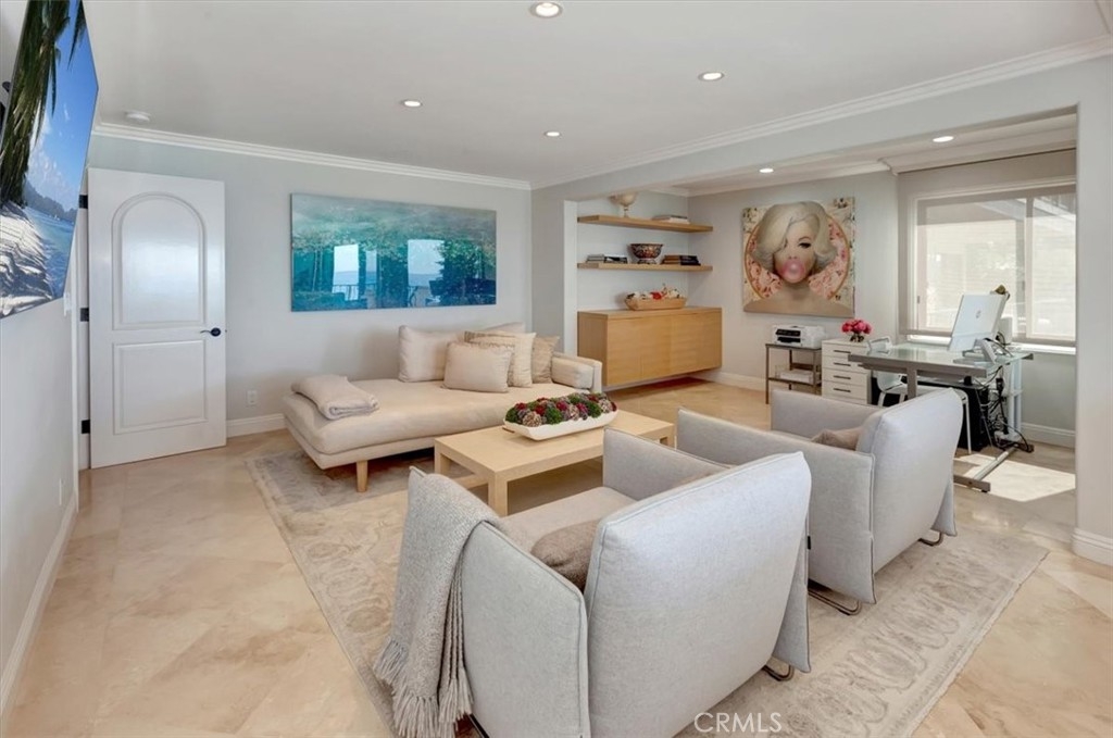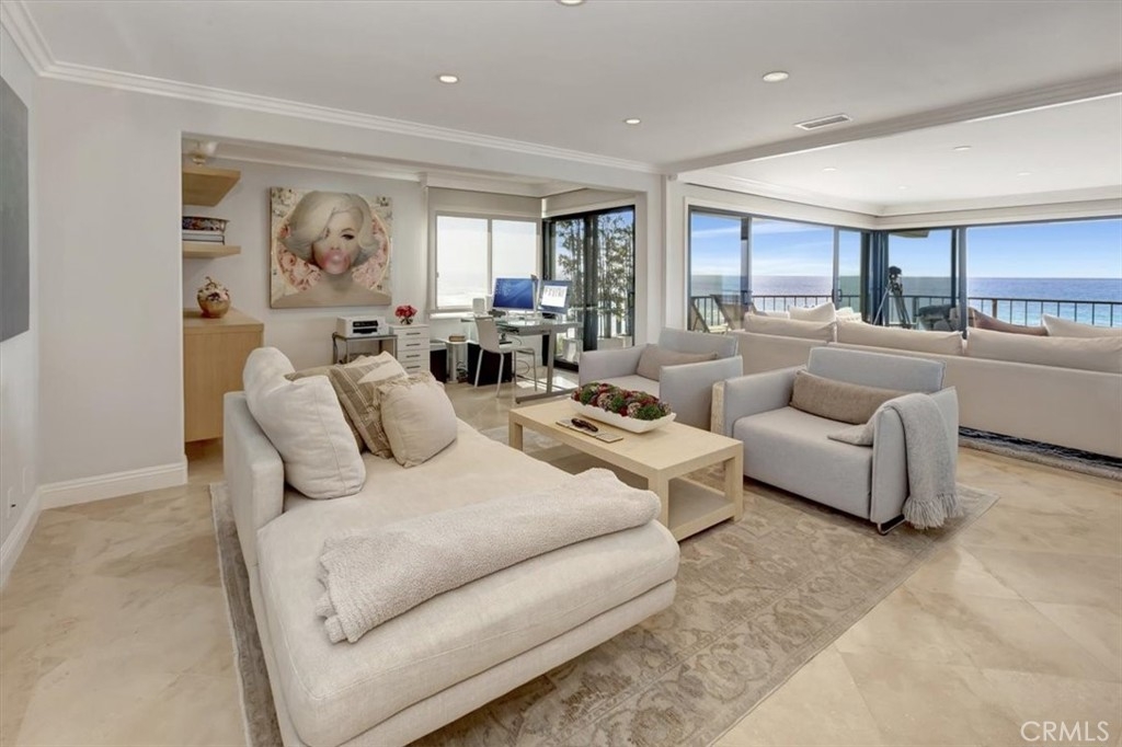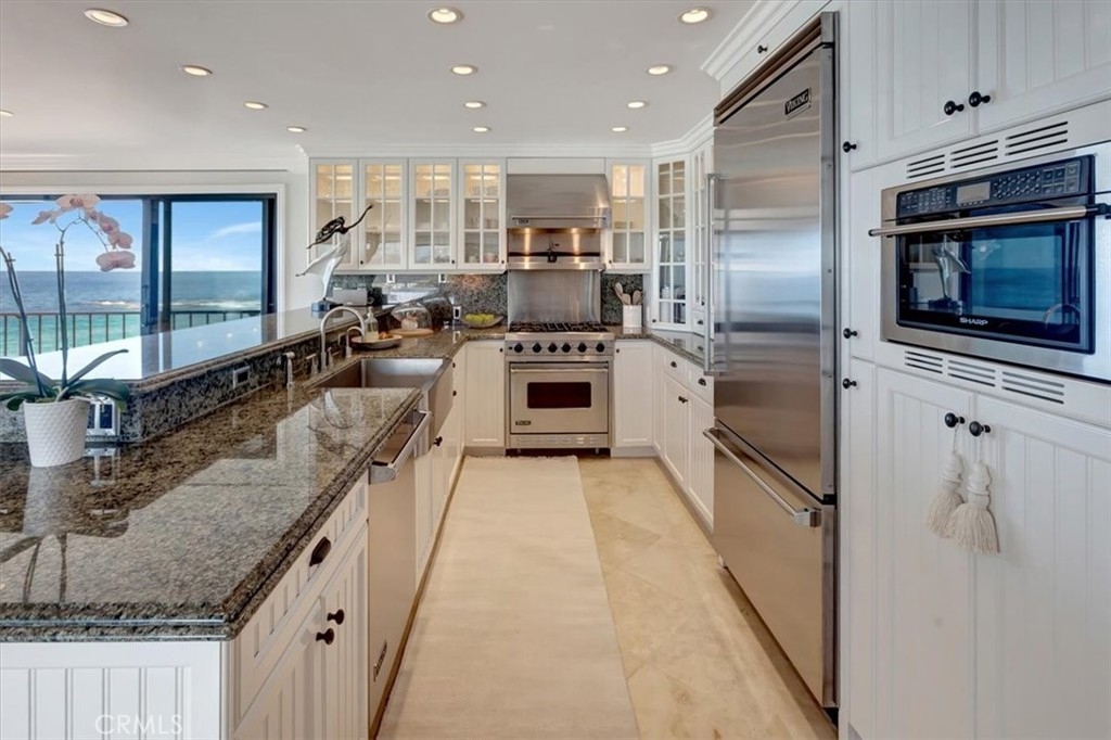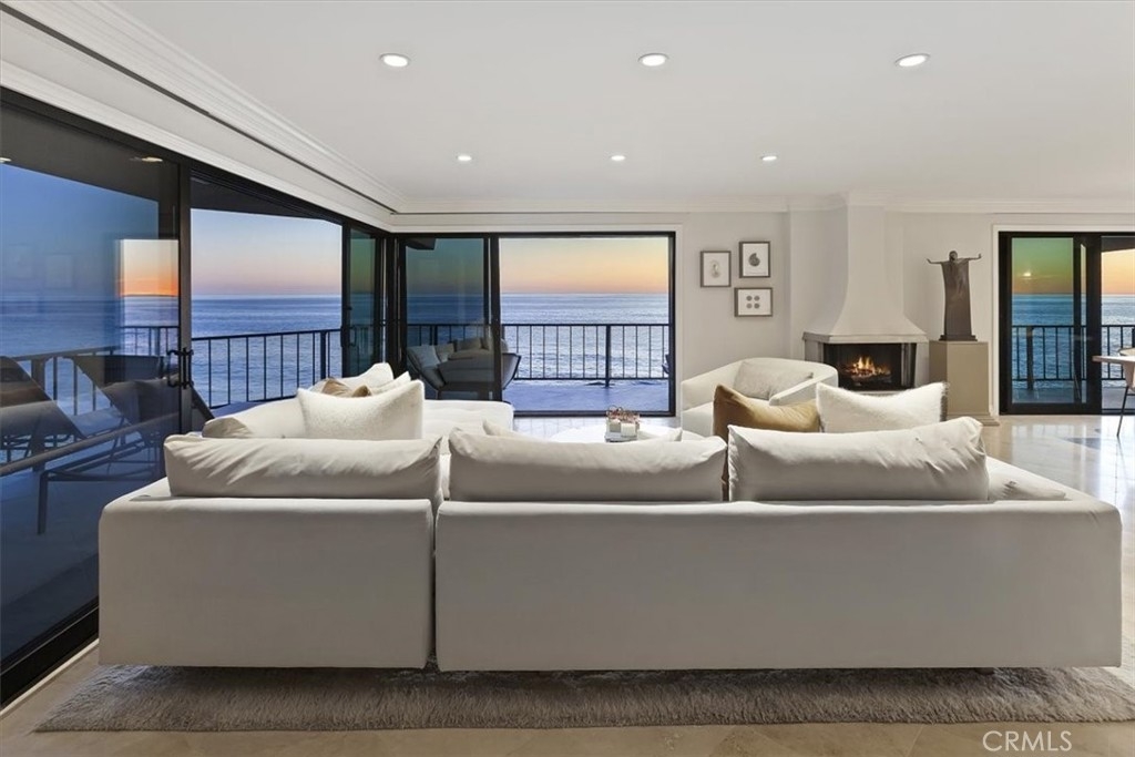 Exceptional Coastal Sanctuary! Unparalleled serenity awaits the discriminating buyer of this elevated beachfront home. Offering a rare blend of natural artistry, refined design, and spectacular 180-degree unobstructed oceanfront views, the penthouse residence offers privacy, beauty, and expansive white-water views within a gated and 24-hour guarded community. Park in one of two reserved parking spaces, access the elevator, and walk along the grotto and lushly landscaped garden to the penthouse. The unique weeping limestone wall at the entrance creates a striking first impression while offering enhanced privacy and security. The distinctive shell garden crowns a massive rock formation, seamlessly connecting the lava base that extends across the beach and into the ocean beyond--an architectural and natural feature that is as rare as it is captivating. Inside, the residence provides expansive and immersive coastal views with a wraparound balcony perfect for Southern California living. Open the sliding glass doors and feel the ocean breeze while cooking in the gourmet kitchen, which boasts high-end appliances, additional bar seating, and ample cabinetry. No detail has been overlooked in the luxurious primary suite, offering sophisticated features and a spacious ensuite, completed by ample walk-in closets designed for comfort and convenience. The other bedrooms offer privacy and serenity, and all bathrooms have been upgraded. Conveniently located on the same level as the heated pool, spa, and fitness center, along with private beach access, the penthouse provides the ultimate in an upscale oceanfront lifestyle.