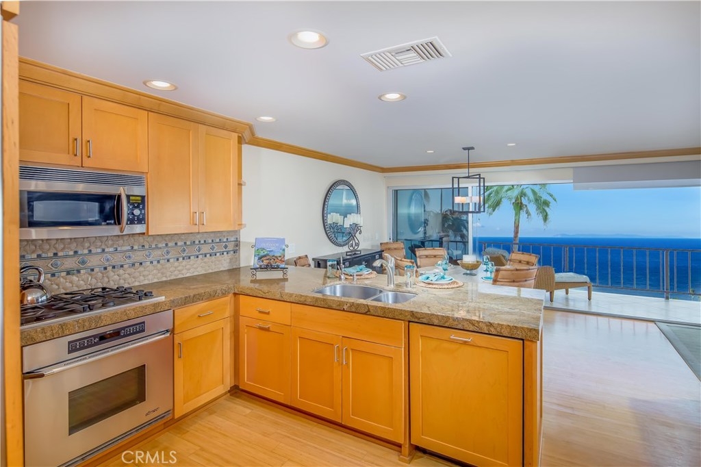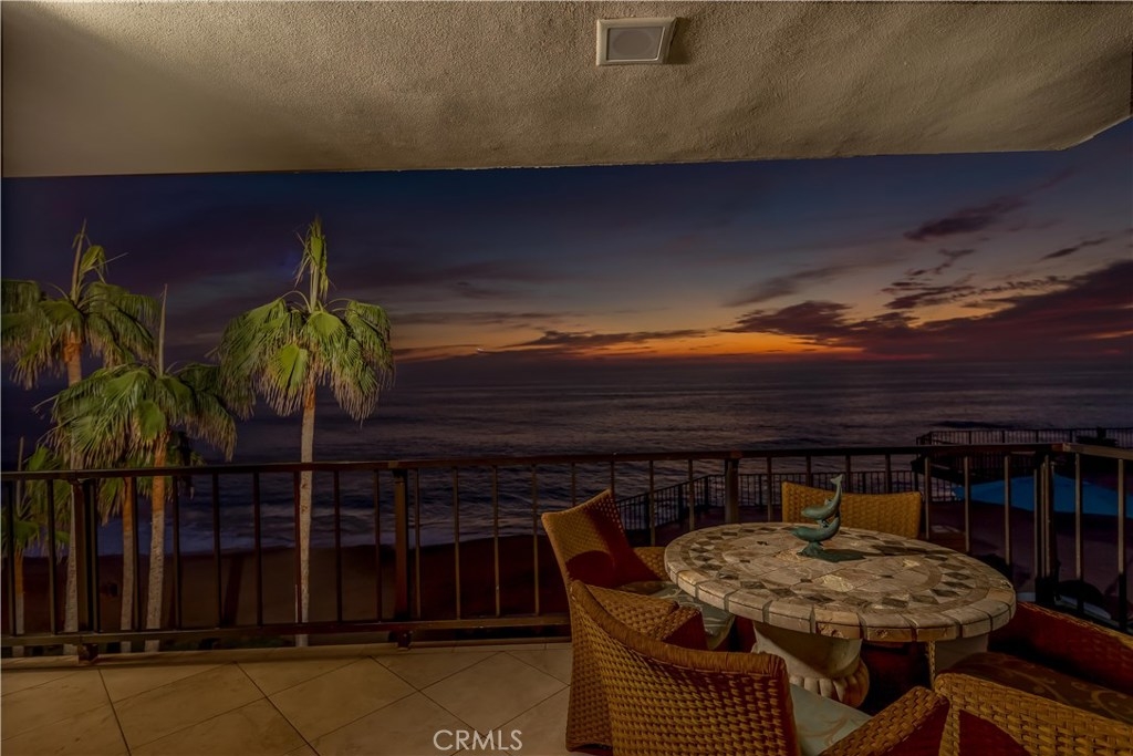 Prime Beachfront Condo, Second Level Above The Sand. Tastefully Remodeled, this home offers endless ocean views that will captivate you as soon as you step inside. This luxurious interior and the sought-after location in the guard gated community of Laguna Royale. Amenities include bamboo flooring, generous built in storage capacity, upgraded gas range and cook top, built in Refrigerator with matching wood panels, granite countertops, unique tile backsplash, eating bar, beverage cooler, double door second bedroom entry, custom tile bathrooms with flow through venation, private custom glass pass through door for viewing the ocean from the master, full size washer/dryer, wall of glass sliding doors out to the lanai style travertine deck, power shades, ceiling fans, recessed lighting, private storage unit, community pool/spa, exercise room, secure subterranean parking garage. Private beach access to one of Laguna's most sparsely populated and beautiful beach, Coast Royale Beach. This home provides the ultimate indoor/outdoor coastal living experience. The crisp Pacific Ocean Aroma, Waves crashing on the sand, Sunsets and Catalina Island views, Whales, Dolphin, Sea hawks and Pelicans all just feet from your lani. This completely turnkey and meticulously designed home in this private resort-like community makes every day feel like a vacation.