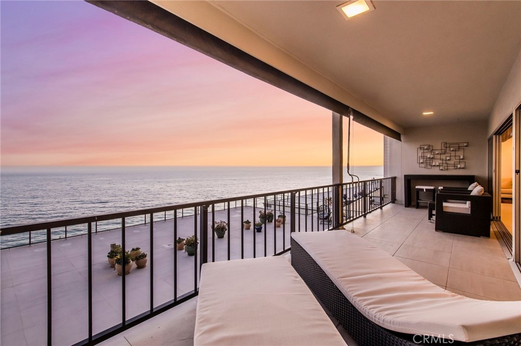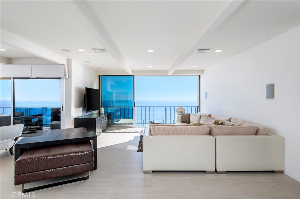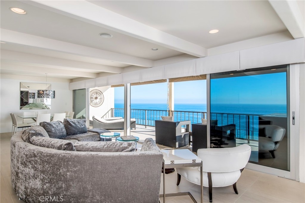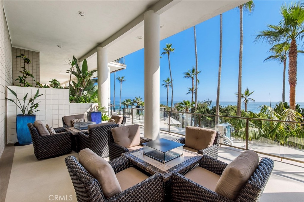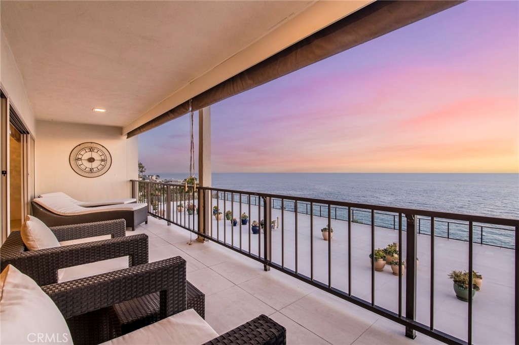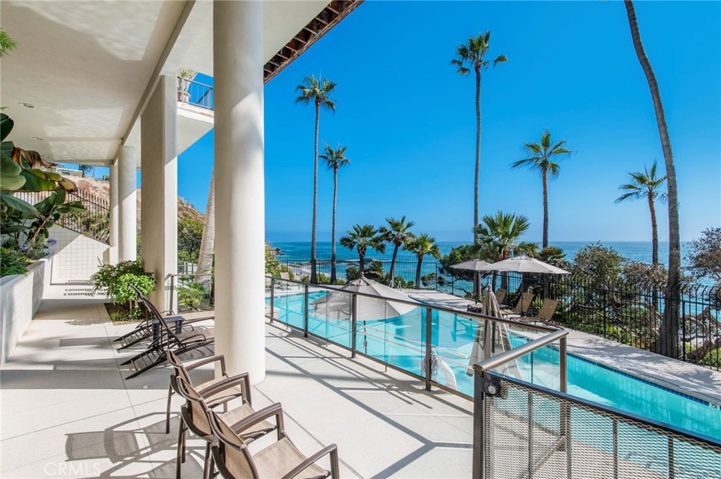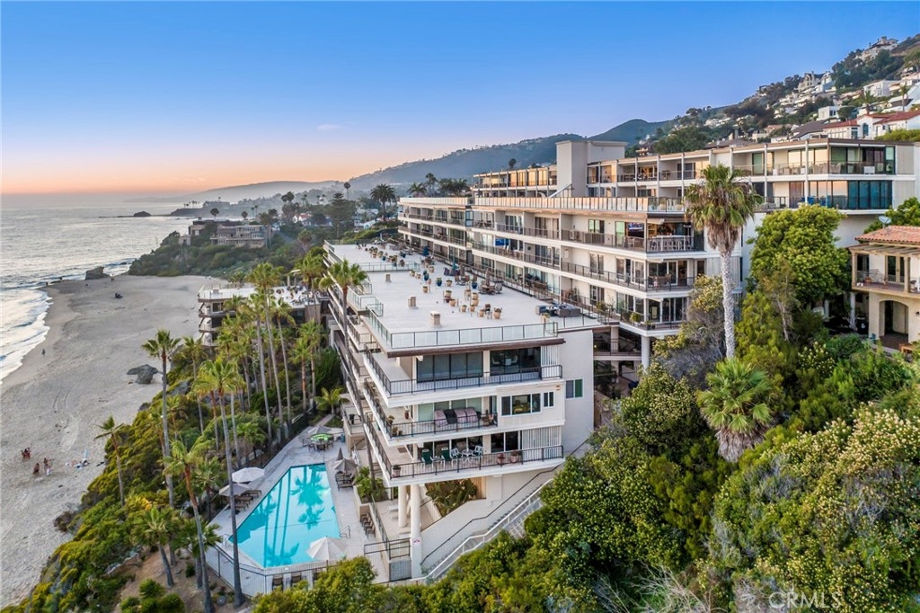 An opportunity to own a penthouse-level unit at the Laguna Royale - one of the largest in the community with expansive ocean and Catalina views to match. Available for the first time, this approximately 2,240 square-foot condominium presents four bedrooms and three full bathrooms in addition to an open Pacific-facing main living area. Two units were combined with care to create a smart, modern floor plan which lends itself well to this property serving as a year-round residence or a lock-and-leave vacation pied-a-terre. Curated with the coastal California lifestyle in mind, the main living area is centered around a sitting section with immediate access to the large balcony via two sets of oversized sliding doors. The adjacent dining room and kitchen, with a suite of stainless steel appliances, including a wine fridge and breakfast bar seating, create a functional floor plan. Accessed via double doors, the ensuite primary bedroom faces the Pacific, offering the perfect backdrop to wake up to. The secondary bedrooms are all of ample size, with two located in the rear of the unit for privacy and one with fantastic ocean views. A functional home office with a built-in desk and a casual sitting area complete this space. Additional amenities of this modern residence include updated bathrooms, central air conditioning, built-in storage, motorized blinds, and two parking spaces. Laguna Royale is known for its amenities, from 24-hour security to a pool, spa, gym, and pathway directly to the sand below. The area’s famous West Street Beach is just beyond the community’s boundary, with the Montage and Laguna’s restaurants, boutiques, and galleries nearby.