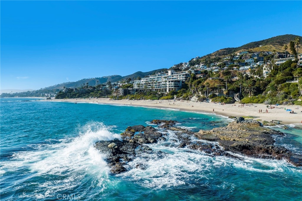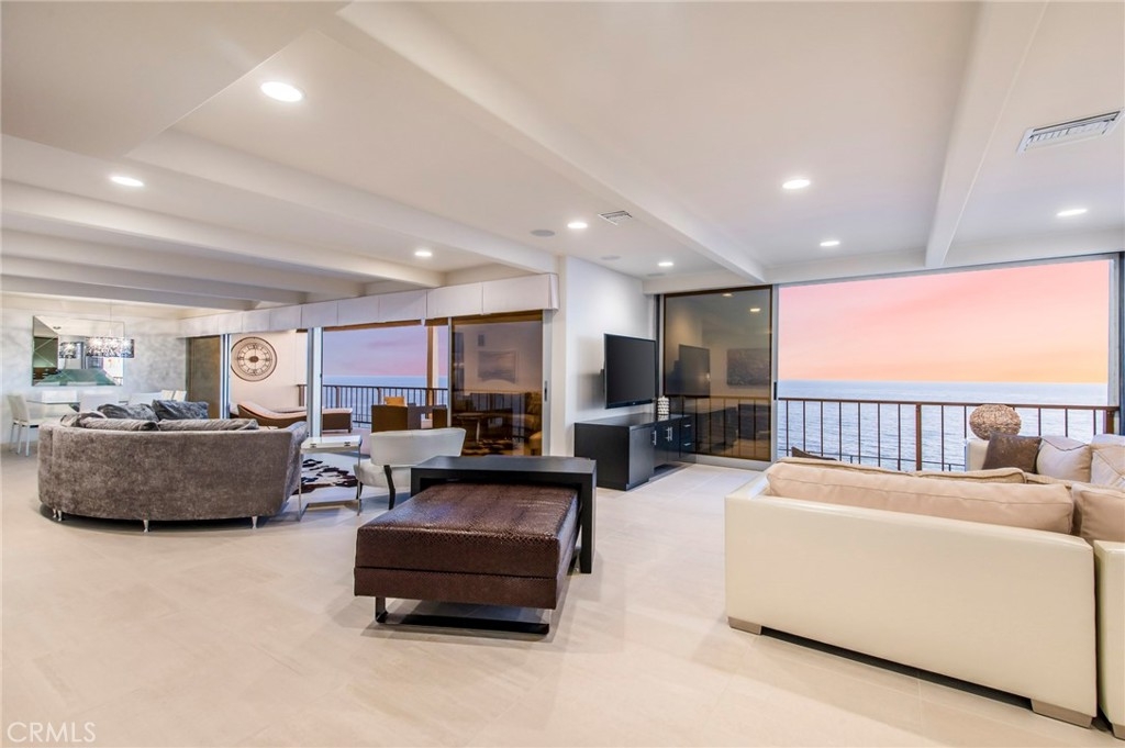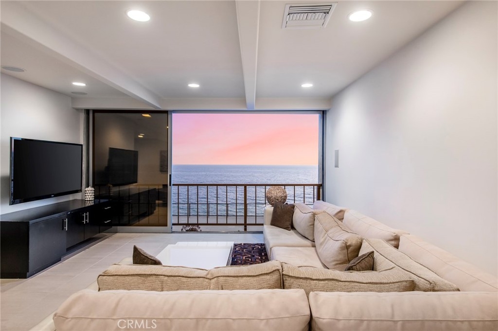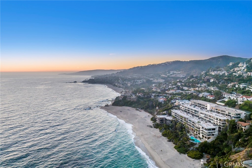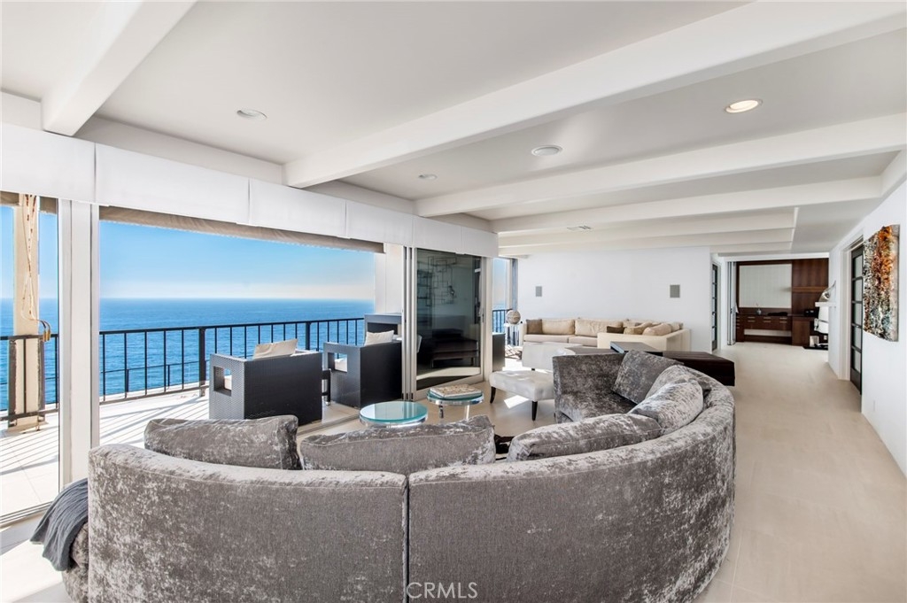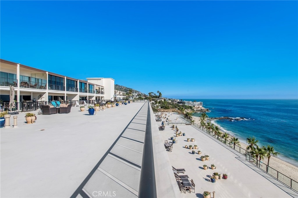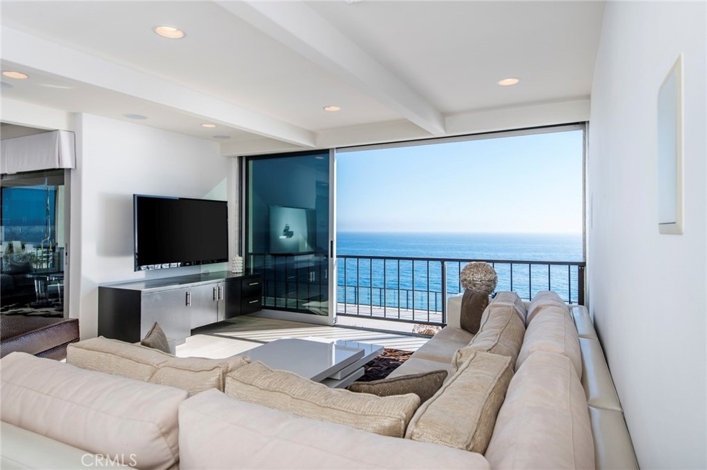 An opportunity to own a penthouse-level unit at the Laguna Royale - one of the largest in the community with expansive ocean and Catalina views to match. Available for the first time, this approximately 2,240 square-foot condominium presents four bedrooms and three full bathrooms in addition to an open Pacific-facing main living area. Two units were combined with care to create a smart, modern floor plan which lends itself well to this property serving as a year-round residence or a lock-and-leave vacation pied-a-terre. Curated with the coastal California lifestyle in mind, the main living area is centered around a sitting section with immediate access to the large balcony via two sets of oversized sliding doors. The adjacent dining room and kitchen, with a suite of stainless steel appliances, including a wine fridge and breakfast bar seating, create a functional floor plan. Accessed via double doors, the ensuite primary bedroom faces the Pacific, offering the perfect backdrop to wake up to. The secondary bedrooms are all of ample size, with two located in the rear of the unit for privacy and one with fantastic ocean views. A functional home office with a built-in desk and a casual sitting area complete this space. Additional amenities of this modern residence include updated bathrooms, central air conditioning, built-in storage, motorized blinds, and two parking spaces. Laguna Royale is known for its amenities, from 24-hour security to a pool, spa, gym, and pathway directly to the sand below. The area’s famous West Street Beach is just beyond the community’s boundary, with the Montage and Laguna’s restaurants, boutiques, and galleries nearby.