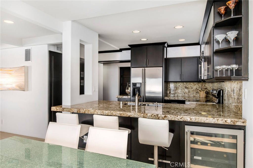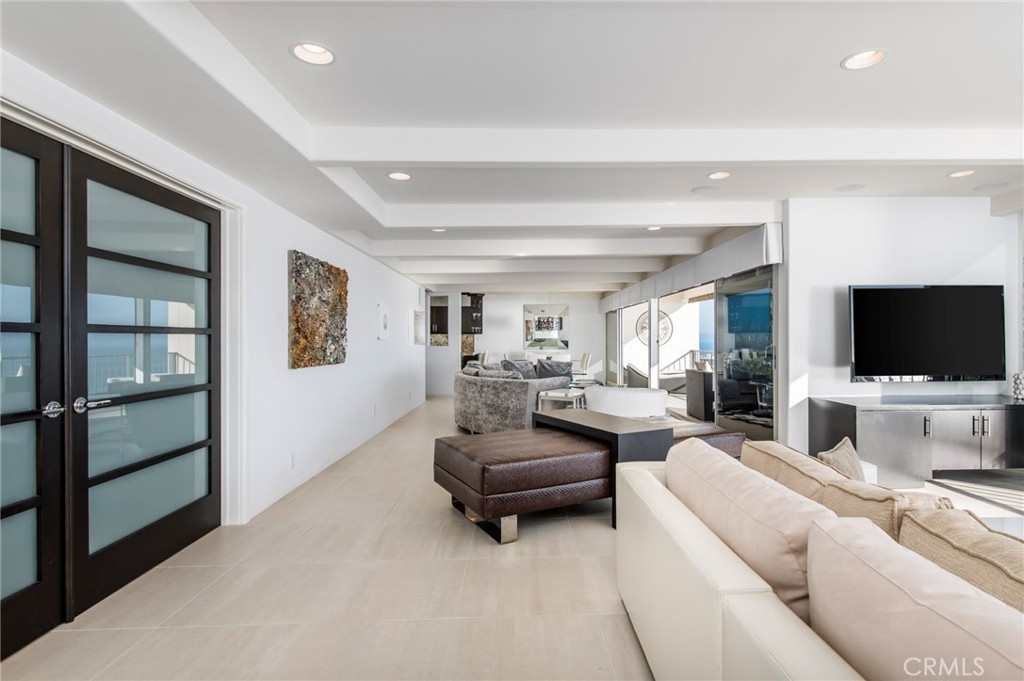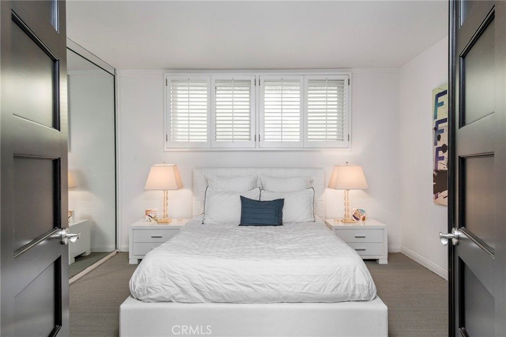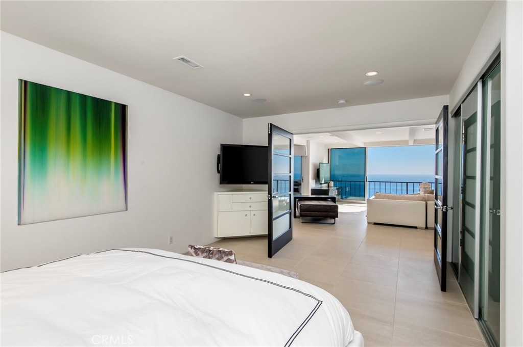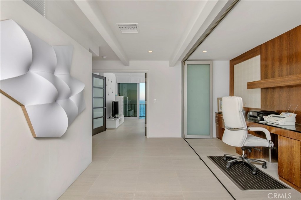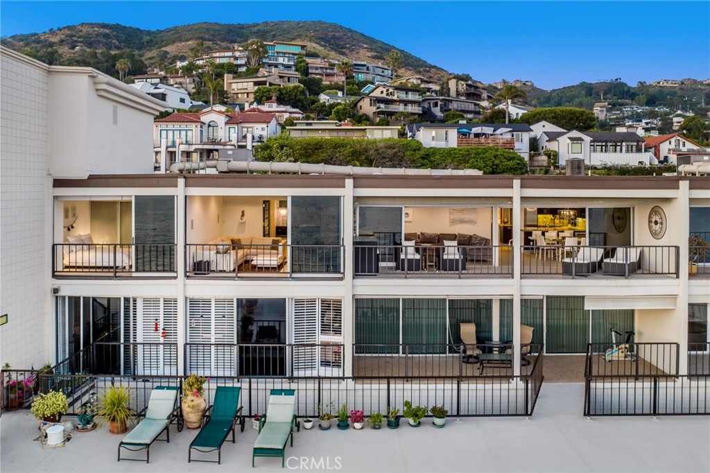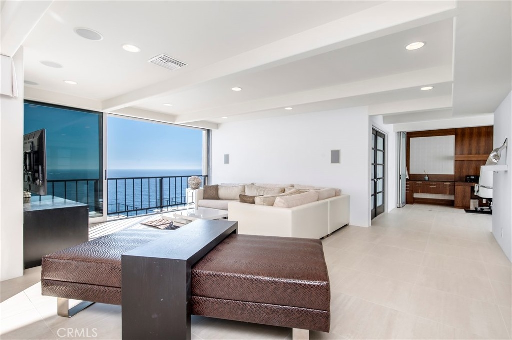 An opportunity to own a penthouse-level unit at the Laguna Royale - one of the largest in the community with expansive ocean and Catalina views to match. Available for the first time, this approximately 2,240 square-foot condominium presents four bedrooms and three full bathrooms in addition to an open Pacific-facing main living area. Two units were combined with care to create a smart, modern floor plan which lends itself well to this property serving as a year-round residence or a lock-and-leave vacation pied-a-terre. Curated with the coastal California lifestyle in mind, the main living area is centered around a sitting section with immediate access to the large balcony via two sets of oversized sliding doors. The adjacent dining room and kitchen, with a suite of stainless steel appliances, including a wine fridge and breakfast bar seating, create a functional floor plan. Accessed via double doors, the ensuite primary bedroom faces the Pacific, offering the perfect backdrop to wake up to. The secondary bedrooms are all of ample size, with two located in the rear of the unit for privacy and one with fantastic ocean views. A functional home office with a built-in desk and a casual sitting area complete this space. Additional amenities of this modern residence include updated bathrooms, central air conditioning, built-in storage, motorized blinds, and two parking spaces. Laguna Royale is known for its amenities, from 24-hour security to a pool, spa, gym, and pathway directly to the sand below. The area’s famous West Street Beach is just beyond the community’s boundary, with the Montage and Laguna’s restaurants, boutiques, and galleries nearby.