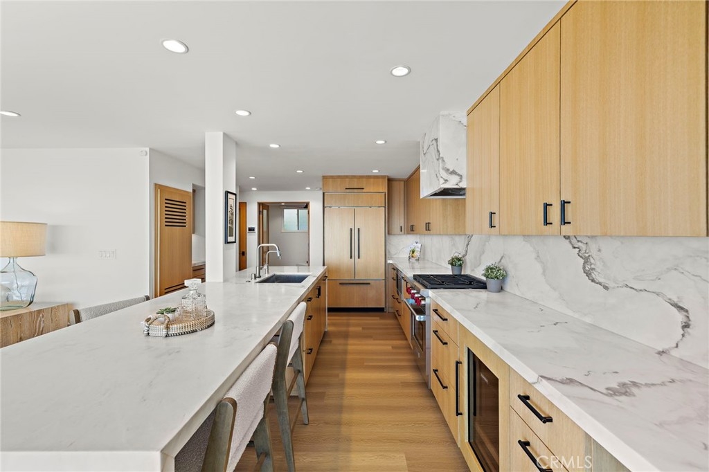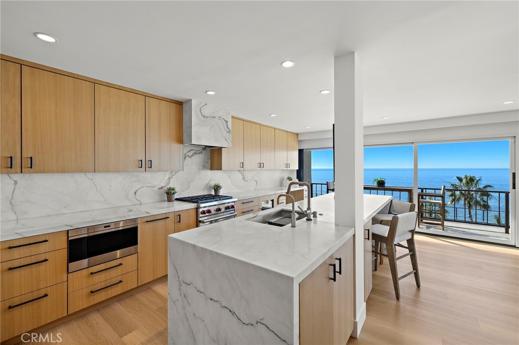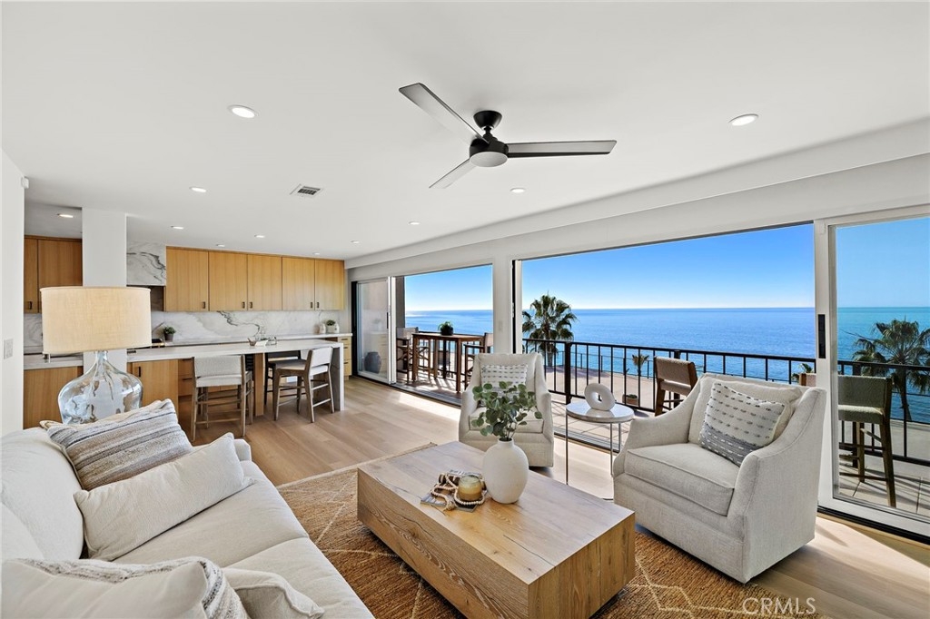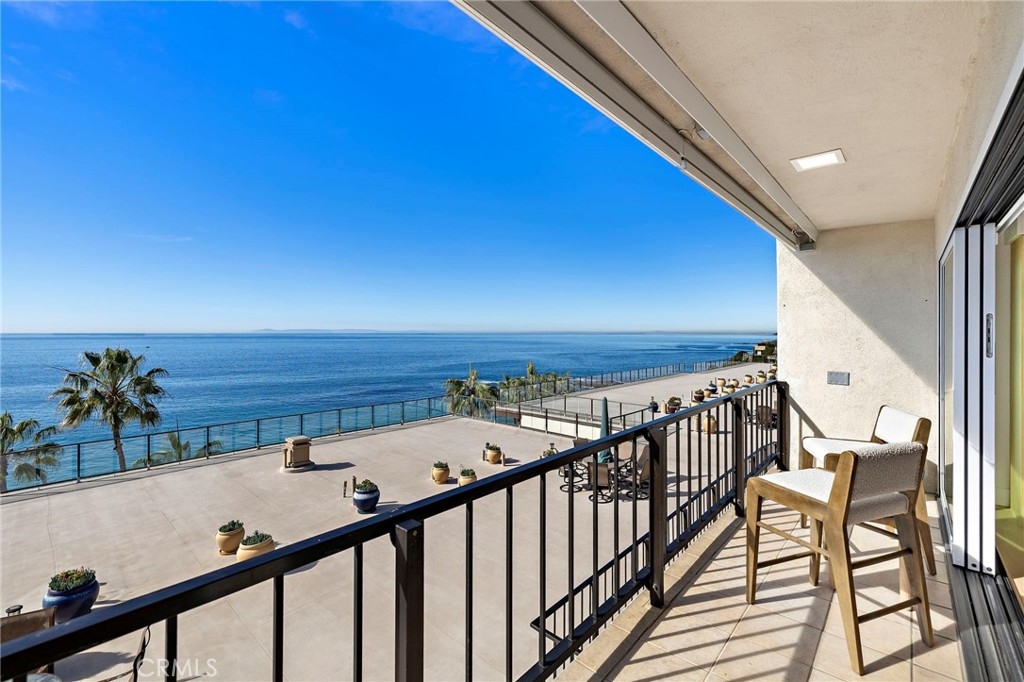 EXCEPTIONAL OCEANFRONT OFFERING IN LAGUNA ROYALE | Rarely available, this stunning single-story residence has been completely rebuilt down to the studs, offering a flawless blend of refined coastal luxury and modern convenience. Every detail has been thoughtfully curated, from custom California Closets built-ins and Hunter Douglas motorized shades to designer furnishings available for a truly turnkey opportunity. The open-concept living space flows effortlessly to a private balcony showcasing breathtaking panoramic views of the Pacific Ocean and Catalina Island—perfect for sunset evenings and whale watching. The chef’s kitchen is outfitted with a Wolf range and oven, Sub-Zero refrigerator, microwave and beverage center, Miele dishwasher, and an in-unit stacked Miele washer/dryer. Adding to its exceptional appeal, the residence is directly accessible from the private parking space with no stairs, offering rare, effortless single-level living. Laguna Royale offers premier oceanfront amenities including direct beach access, heated pool and spa, fitness center, guest parking, 24-hour security, on-site management, and two elevators. Enjoy the best of Laguna Beach living with world-class dining, art galleries, scenic coves, and vibrant coastal events just minutes away—if you’ve been searching for the perfect coastal retreat, stop looking—this is it!