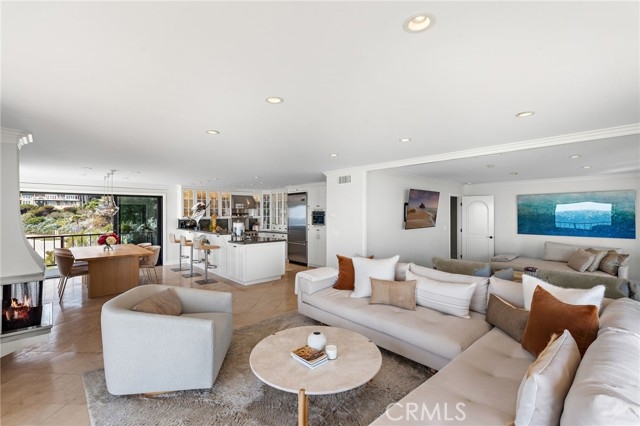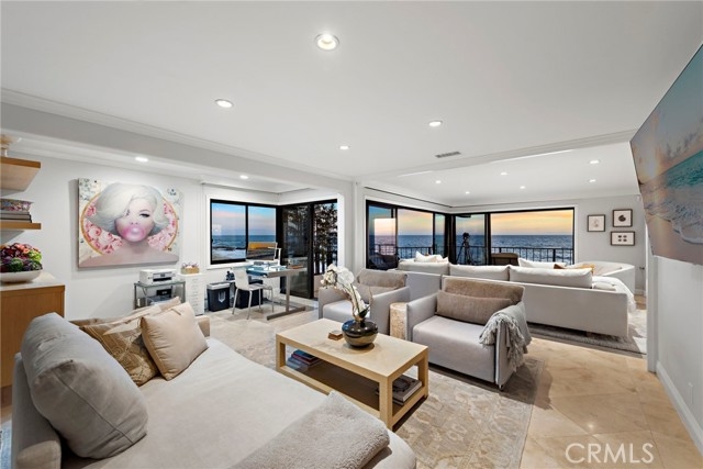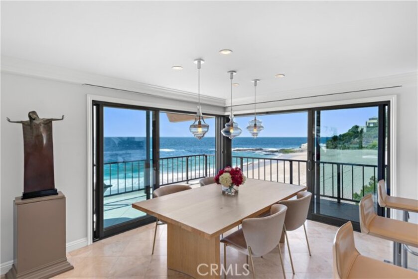Oceanfront Penthouse on the Sand! Wonderful privacy! No one in front of your home, set forward from the neighbor and no one on one side! This is why celebrity Michael Langdon from “Bonanza”and “little House on the Prairie” bought this property! Laguna Royale offers an unparalleled oceanfront living experience. This spacious 3-bedroom, 2-bathroom condo boasts unobstructed, 180-degree views of the Pacific Ocean, Catalina Island, and breathtaking year-round sunsets. The property’s extreme forward position provides a rare and expansive 99 feet of oceanfront frontage—three times that of most other oceanfront condos in Laguna Beach—creating a sense of exclusivity and tranquility. The home’s open-concept design invites natural light and offers seamless flow between the indoors and the expansive outdoor living spaces. The newly renovated interiors feature high-end appliances, premium fixtures, and luxurious finishes, ensuring that the home is move-in ready and ideal for modern living. The large wrap-around balcony offers panoramic views of the surf and sand, making it perfect for entertaining or simply enjoying the ever-changing colors of the ocean and sky. Residents enjoy a host of luxurious amenities, including concierge-like service with 24-hour security, a heated oceanfront pool and spa, fitness room, and direct beach access. The home also includes a private, two-car garage and a quiet, serene setting in a peaceful, exclusive community. This is a unique opportunity to own one of the largest oceanfront condos in Laguna Beach, with a total living space of 1902 sq ft, blending the beauty of nature with world-class luxury. A property like this must be seen in person to truly appreciate the stunning views, sounds of the waves, and the unparalleled setting.