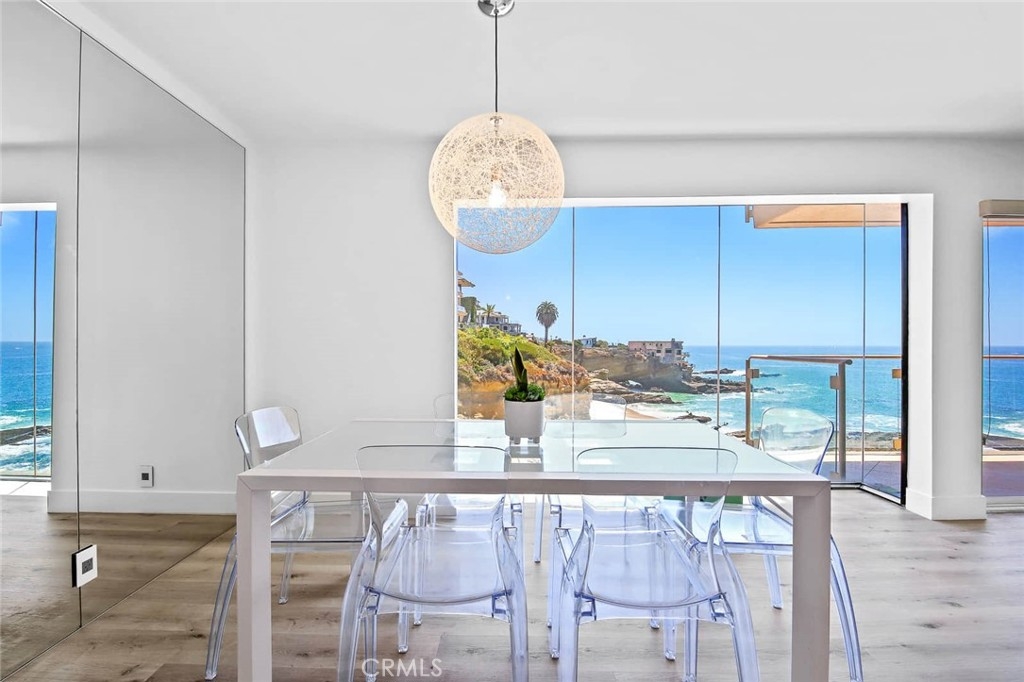 Hard to find fully remodeled ocean/beach front condo in Laguna Beach, California. Picture perfect views of white water waves, shimmering ocean and rock formations, situated on a bluff, this stunning modern style single level condo has an open floor plan that is bright and airy with two bedrooms and en-suite bathrooms. The master has built in ceiling to floor wardrobe cabinets, walk in shower, Porcelanosa countertop, lighted mirror and second bedroom with built in Murphy bed and walk-in closet. The contemporary kitchen features Scavolini cabinets, Porcelanosa countertop, Miele dishwasher, Kitchenaid stainless steel range/oven. The living room is anchored by a cozy fireplace with picturesque window views which expands to the patio from living room or master bedroom. New dual A/C-Heat wall units installed in main living area and master bedroom. Tablerock community amenities include pool, spa, clubhouse, billiard room, fitness room, barbecue area with ocean view, private walk way around the building with spectacular ocean views leading to a private gated entrance to West Street beach and another path for access to Turtle Rock Beach. Located near art galleries, resorts, shopping, restaurants, endless beaches, and hiking trails. Short drive to Newport Beach, Irvine Spectrum, UC Irvine and John Wayne Airport.