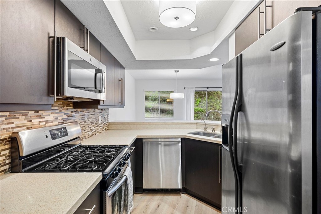 Live the Laguna Beach dream in this stylishly updated 2-bed, 2.5-bath coastal condo in the resort-style Terraces community. This move-in-ready home blends modern finishes with laid-back beach living—perfect for first-time buyers, or anyone wanting a chic full time or second home minutes from the ocean, but also convenient to get to the freeway and toll road for commuters. Step inside to bright, airy spaces and an open-concept layout ideal for entertaining or unwinding after a beach day. The remodeled contemporary kitchen flows into a spacious living and dining area, complete with fresh paint, luxury vinyl plank flooring, and a cozy fireplace. Slide open the doors to your private patio for morning coffee or outdoor dining. Upstairs, you’ll find two oversized bedrooms with en-suite bathrooms, including a beautifully renovated primary suite with sleek finishes and custom-built closet systems. Skylights, new flooring throughout, and matte-black door hardware add a clean, modern feel. Enjoy the convenience of direct-access garage parking, plus an additional detached garage for storage, gear, or a second car. The Terraces community offers lush landscaping and sparkling pools—all just minutes from downtown Laguna Beach, world-class beaches, and top-rated Laguna Beach schools. Whether you're after your first home, full time home, a stylish retreat, or a low-maintenance getaway, this condo delivers the full Laguna lifestyle. Come see why life here feels like a permanent vacation.