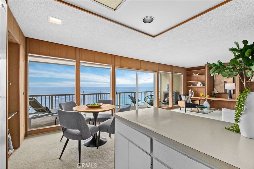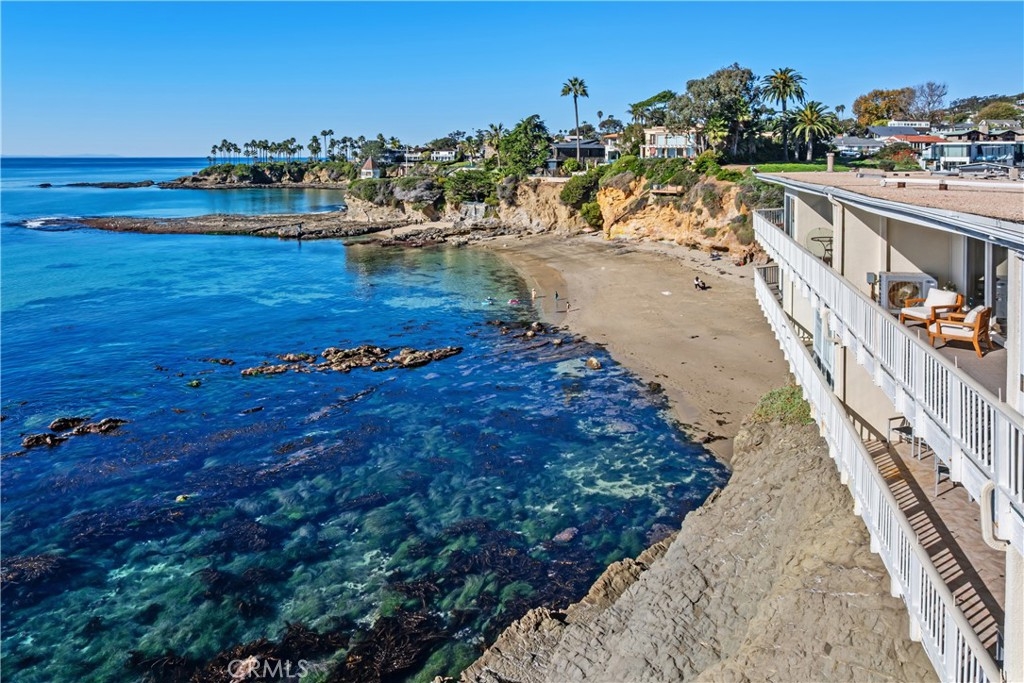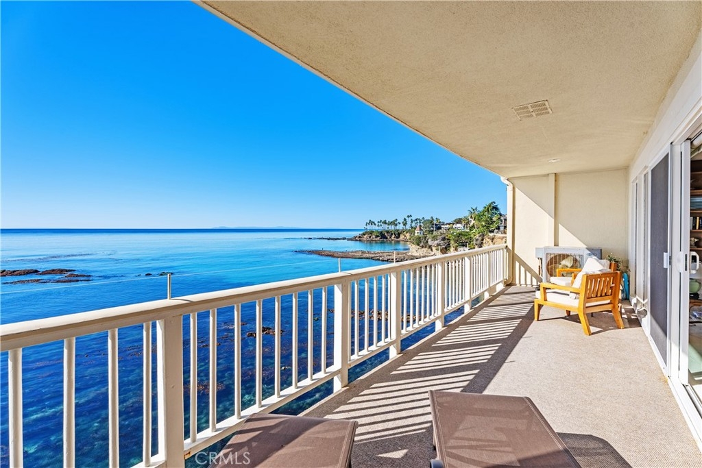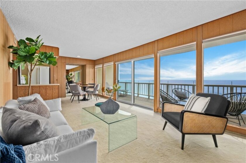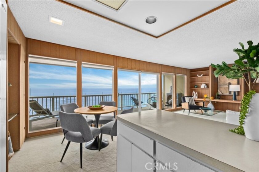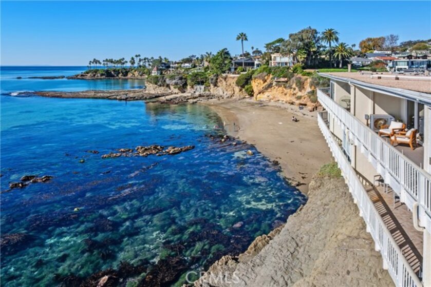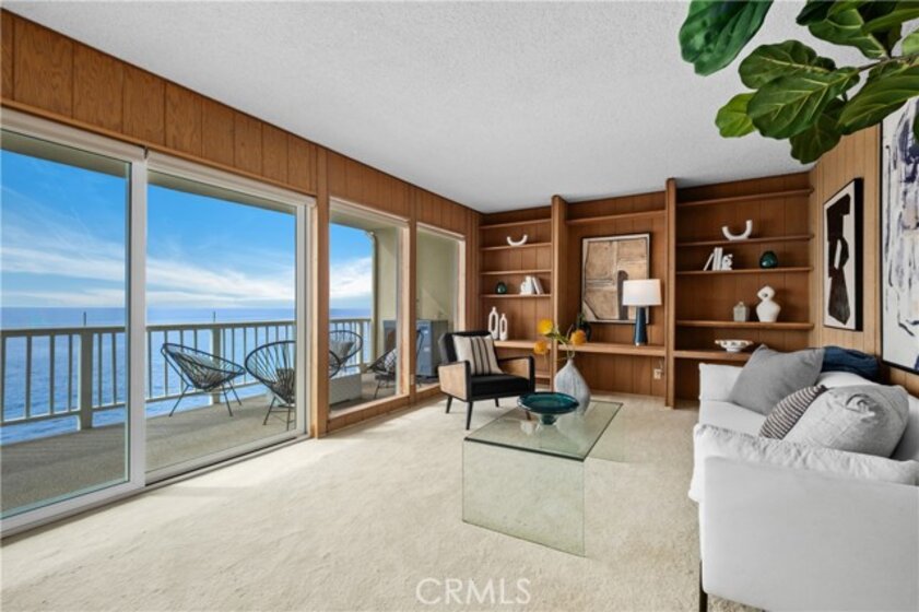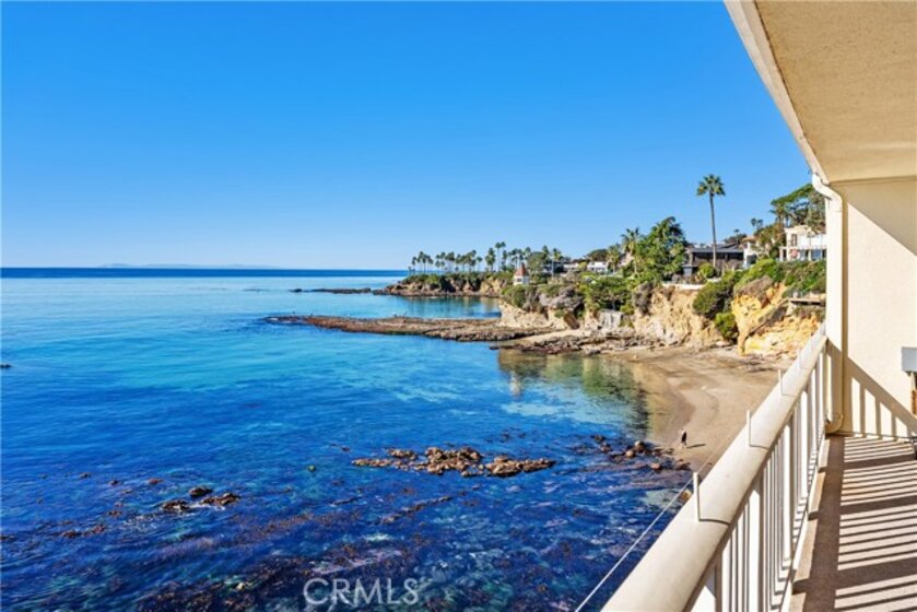 631 Cliff Drive is a rare front-row oceanfront residence, held by the same family since 1971 and positioned directly above the surf in one of Laguna Beach’s most coveted bluff-top communities. This single-level, top-floor two-bedroom, two-bath condominium offers approximately 950 square feet of living space with unobstructed, panoramic views of whitewater, coastline, and sunsets from the main living areas and a full-width, ocean-facing balcony. Perched at the cliff’s edge, the home enjoys a dramatic, front-row vantage point where the sound and motion of the Pacific are ever-present. The balcony spans the width of the residence and extends directly over the rocks and water below, creating a rare sense of being suspended above the coastline. The living and dining areas are oriented directly toward the ocean, forming a seamless connection between the interior and the dramatic coastal setting outside. The interior retains its original character, featuring custom wood shelving and period paneling, offering a unique opportunity for a buyer to reimagine the space while honoring its timeless setting and extraordinary location. Ideally situated between Divers Cove and Boat Canyon, the property provides immediate access to some of Laguna Beach’s most iconic coves, beaches, and coastal walking paths. The gated community features a pool, secure parking, and private direct beach access, further enhancing this exceptional oceanfront offering. 631 Cliff Drive represents a truly irreplaceable opportunity to own a legacy bluff-top property in one of Southern California’s most sought-after coastal settings—where location, view, and history converge.