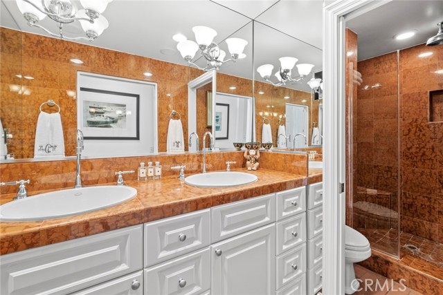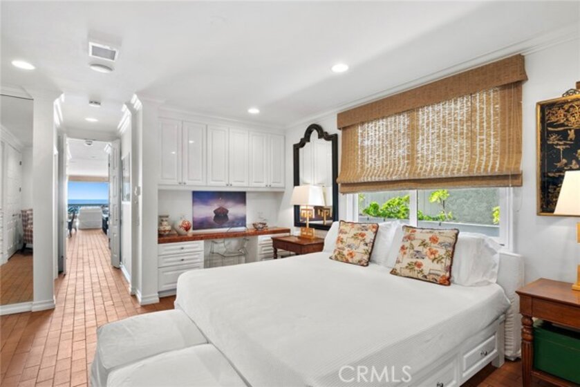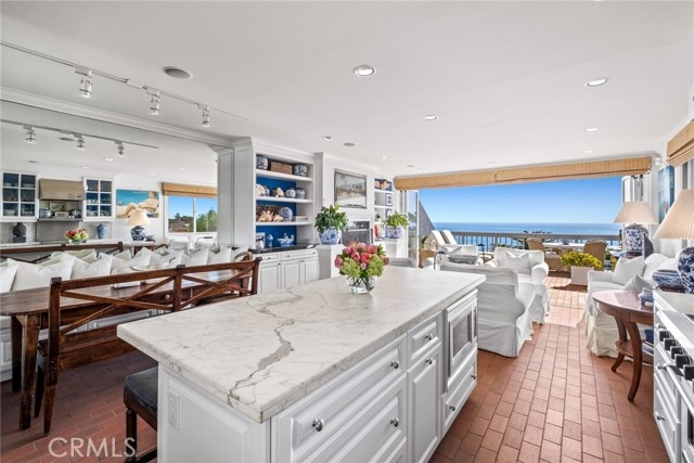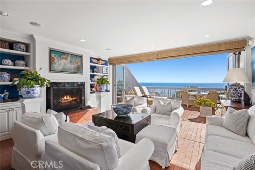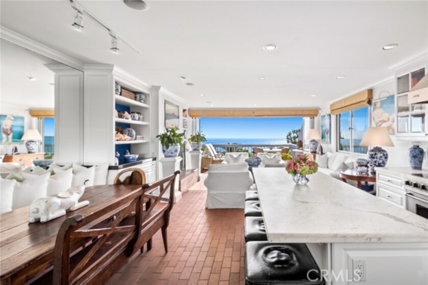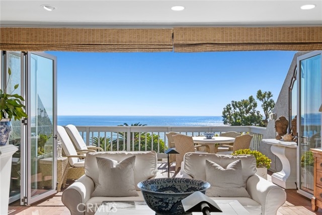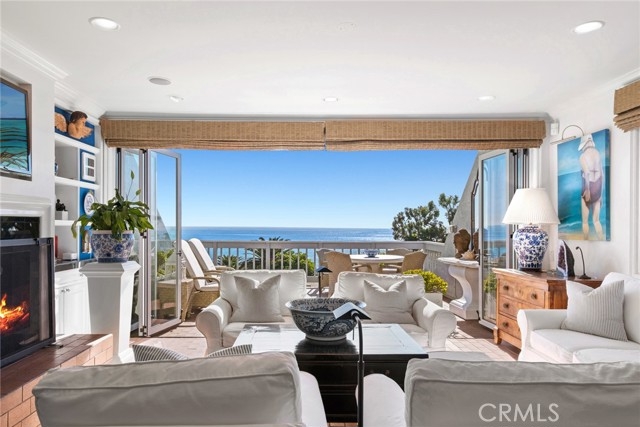 Experience ultimate luxury in this stunning single-level coastal home with mesmerizing ocean views and breathtaking panoramic vistas of the crashing waves. With two bedrooms and two bathrooms, this gem boasts a spacious open floor plan and a living room that opens to an entertainment deck overlooking the Pacific Ocean and Catalina Island. Indulge in the epitome of luxury living with this meticulously remodeled property. Impeccably designed with a timeless aesthetic, every detail has been thoughtfully curated to create a truly unparalleled living experience. High-end finishes, including Viking Professional appliances and Statuary Marble countertops, complete the look. From the light-filled interiors to the custom crown moldings and doors, no detail has been overlooked. The state-of-the-art sound system, with sound bars in both the ceiling and floor, enhances any musical experience, both inside and out. The added square footage in the form of a beautiful garden room with storage and a tiled fountain provides the perfect indoor-outdoor living experience. The primary bedroom is a true oasis, featuring a desk with a stunning Rosa Verona marble top, and ample built-in storage is present throughout the home, including under beds and banco seating in the great room. Tucked away in a small, upscale development of only nine units, this rare coastal retreat offers tandem parking for two cars, street-level entry, and a private gated garden courtyard. Enjoy the best of both worlds as this property is just steps from world-class shopping, dining, and famous beaches, including Diver's Cove Beach and Heisler Park. It is located in prestigious North Laguna on the ocean side of Pacific Coast Highway and across the street from a shopping center. Ideal for use as a primary residence or beach getaway, this is a once-in-a-lifetime opportunity.