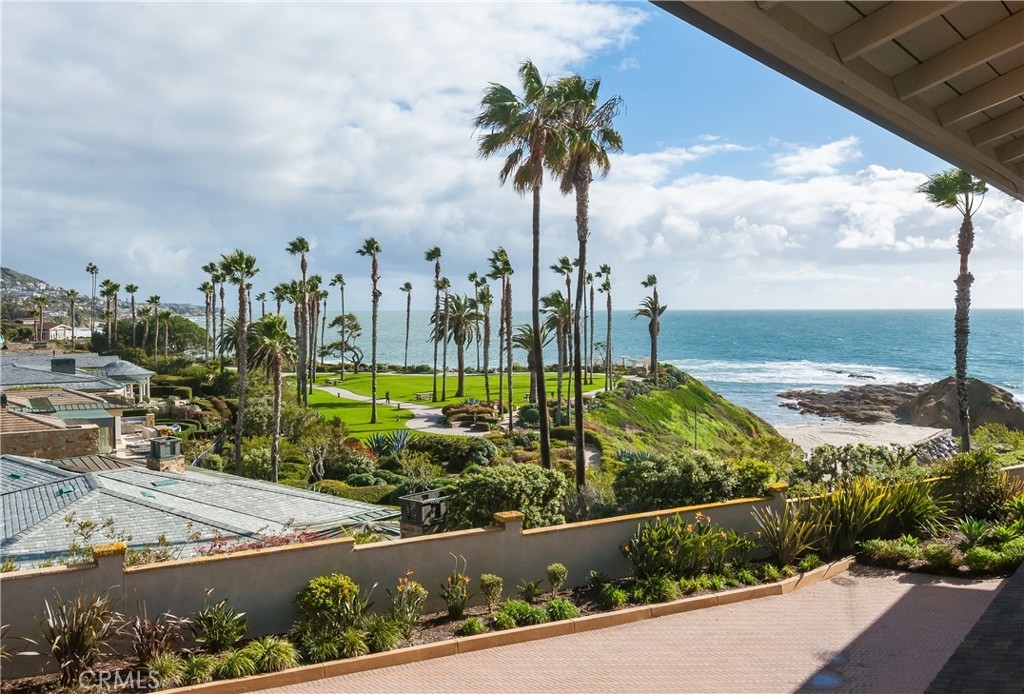 Oceanside private community of Blue Lagoon Villas overlooking one of Laguna Beach's best beaches next door to the Montage and access to Victoria Beach! This property is considered the most desirable location in the community, offering both North and South coastline whitewater views, Catalina Island along with picturesque hills and city night light views! Relax with the crashing sound of the surf and the occasional surprise of whales and dolphin swimming by. Experience the most colorful and magnificent sunsets. Resort living at it's best! Offers expanded floor plan with open lower level with full bathroom, could be used as den/3rd bedroom, and great patio. Spacious living room with spectacular whitewater views opening to dining area and kitchen with upgrades. Light & bright upper level primary bedroom suite with upgraded bathroom, ocean views, walk-in closet. Secondary bedroom suite and bath with views of ocean, hills and Montage. Blue Lagoon community amenities include 2- year round heated swimming pools, tennis/pickleball court, fitness center, outdoor kitchen & cabana in upper community center. Close proximity to restaurants, Montage Spa & Resort, The Ranch, and golf.