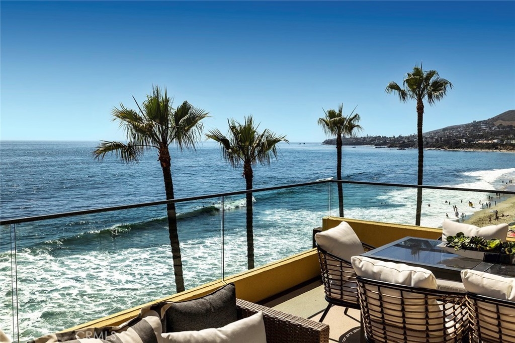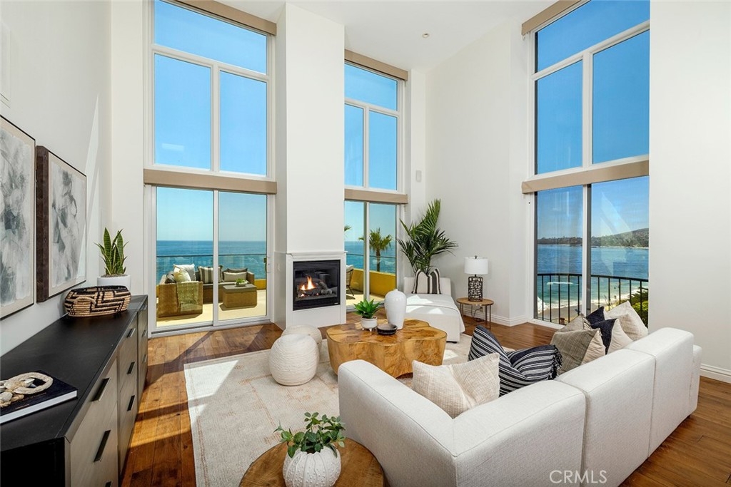 New Price! Seize a rare opportunity to own this remarkable 3-bedroom, 3.5-bathroom oceanfront condo in Laguna Beach, where the allure of coastal living meets unmatched panoramic views of the Pacific Ocean. Positioned directly on the sand, oversized windows and a sprawling balcony present a front-row seat to stunning sunsets, rolling waves, and the sparkling coastline lights at night. Inside, the living room boasts soaring ceilings and a cozy fireplace, complemented by elegant wood floors that enhance the beachside atmosphere. This turnkey residence is perfectly situated near Laguna's finest dining, shopping, and renowned art galleries, offering both convenience and immersion in the vibrant local culture. As one of the premier upper units in the fourplex, amenities include an elevator, outdoor shower, direct beach access, additional patio on the sand, and two designated parking spaces, making this an extraordinary chance to embrace the quintessential Laguna Beach lifestyle amidst unparalleled natural beauty and coastal charm.